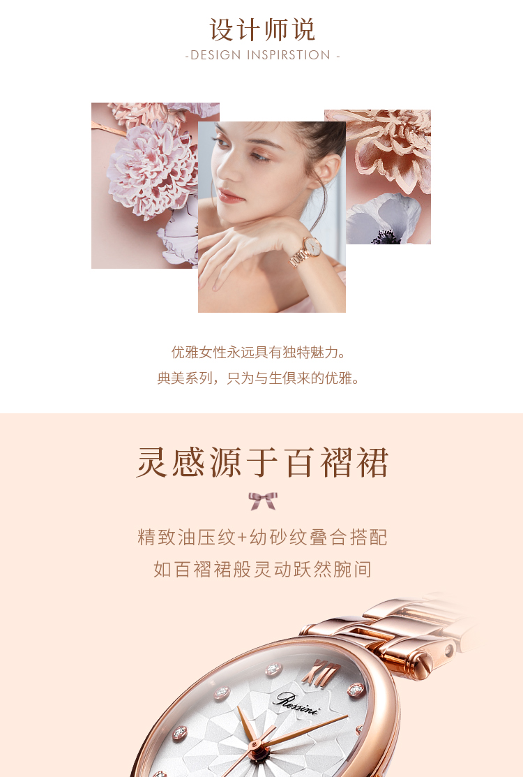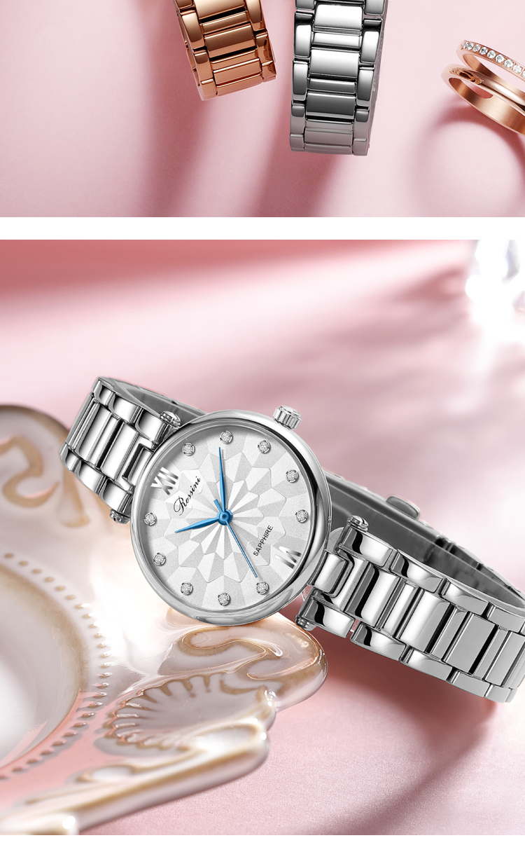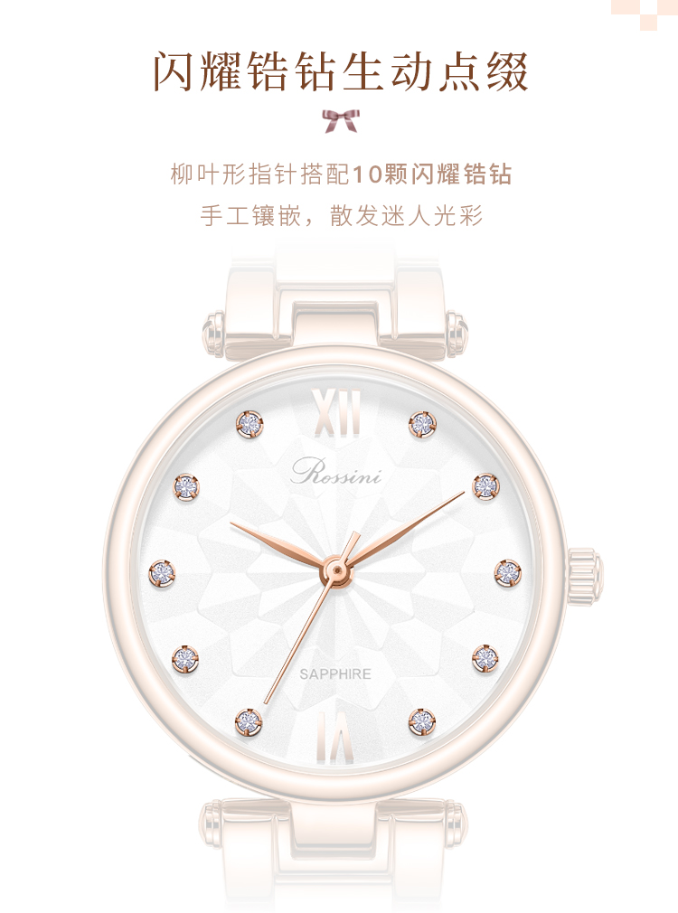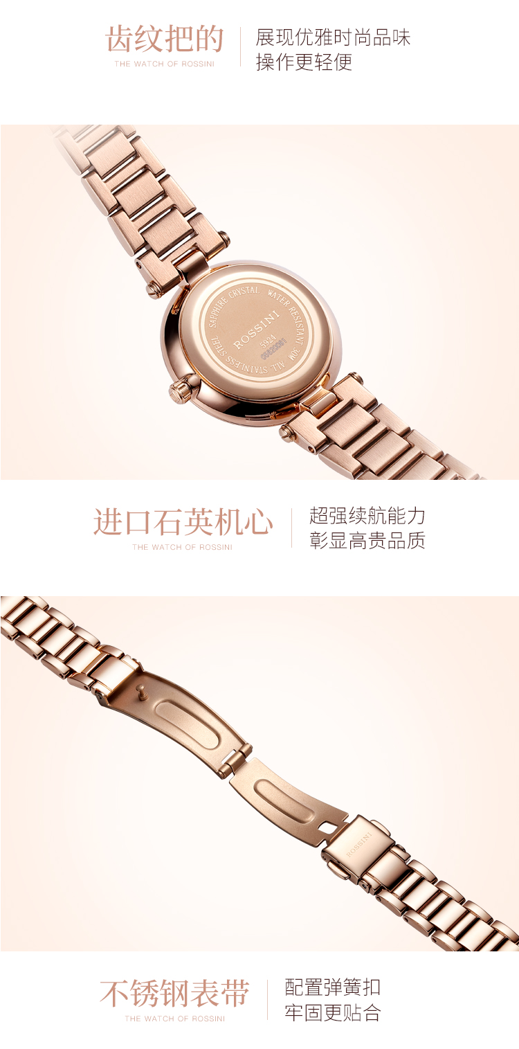 Rossini罗西尼 典美系列 时尚防水石英手表白盘钢带女表5924W01A(单位:只) 白色