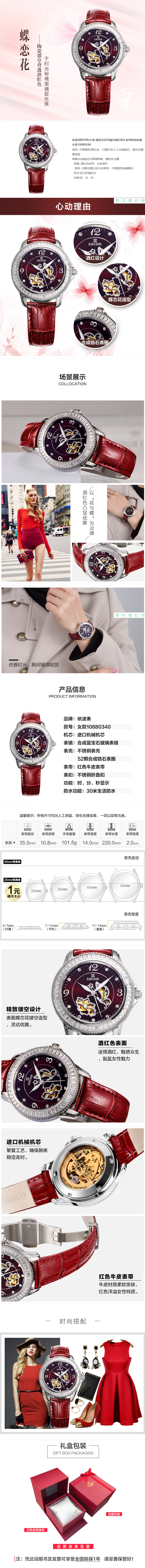 依波(EBOHR) 蝶恋花系列 时尚机械手表镂空酒红面牛皮带女表10880340 红色 红色