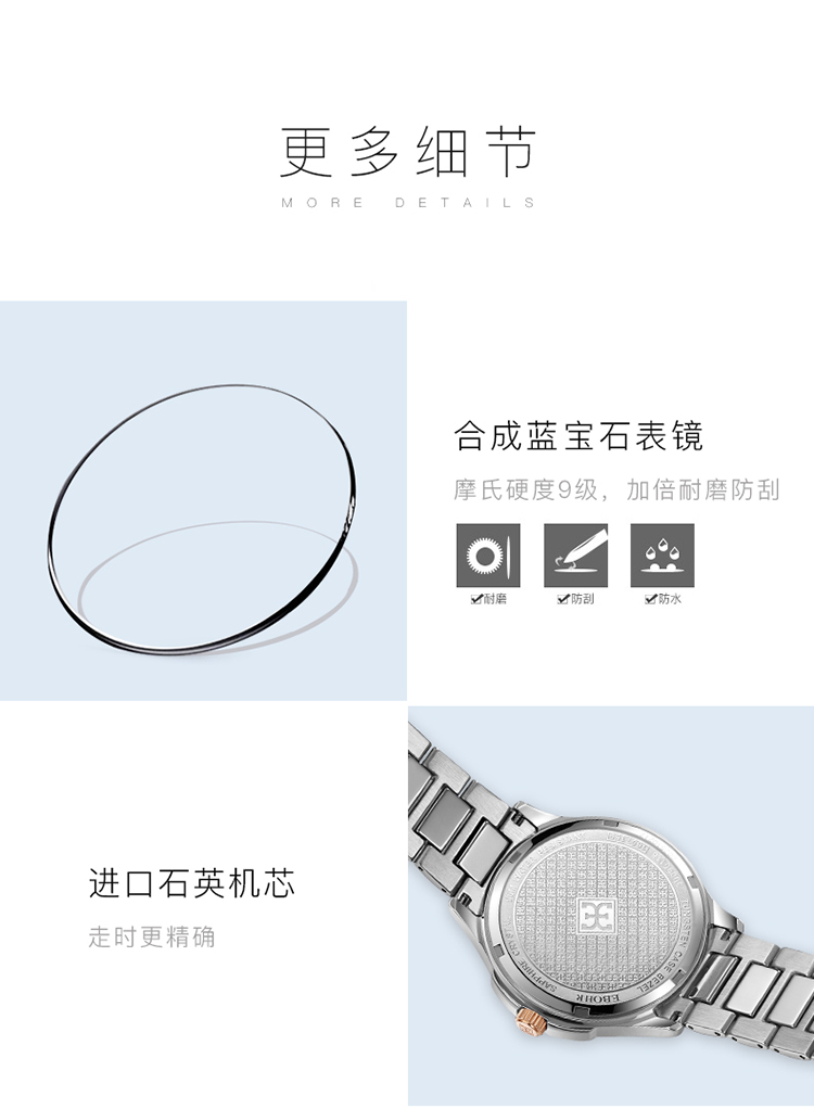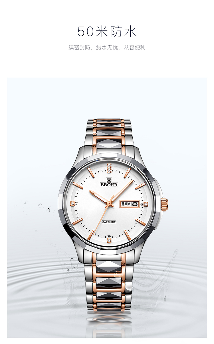 依波(EBOHR) 巡展款 石英手表防水双日历商务女款表30090125 金色 金色