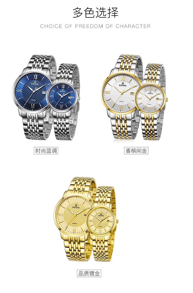 依波(EBOHR) 石英手表休闲防水日历时尚百搭情侣款 璨金女表30110328 金色 金色