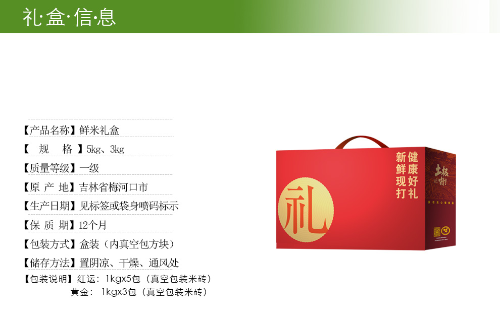 土极啦现打鲜米礼盒东北大米非转基因米鲜米黄金礼盒3kg 图片色 图片色