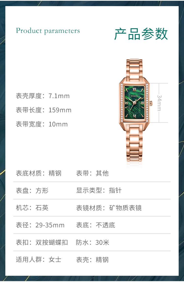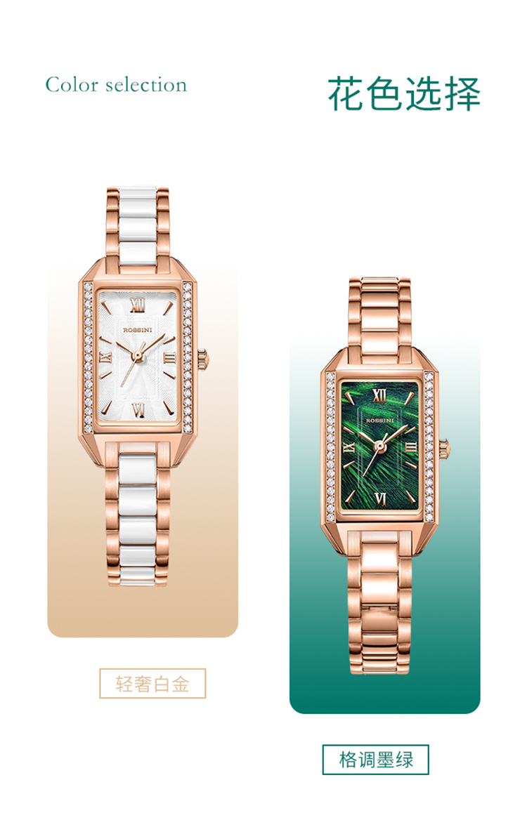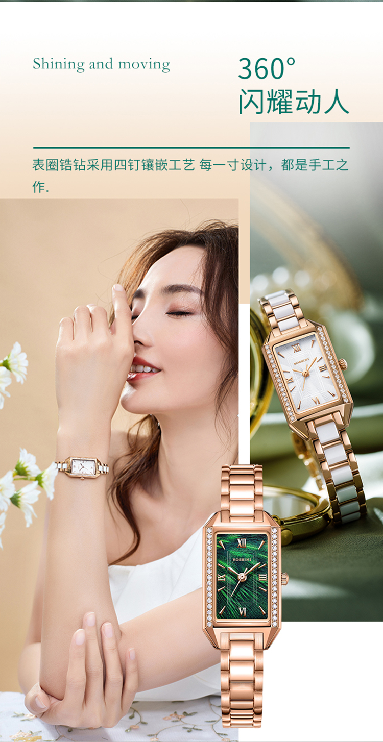 Rossini罗西尼 典美系列 石英手表时尚百搭白盘陶瓷钢带女表1446G01A(单位:只) 白色