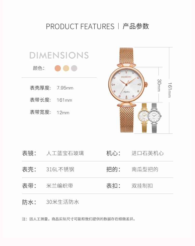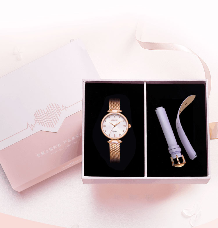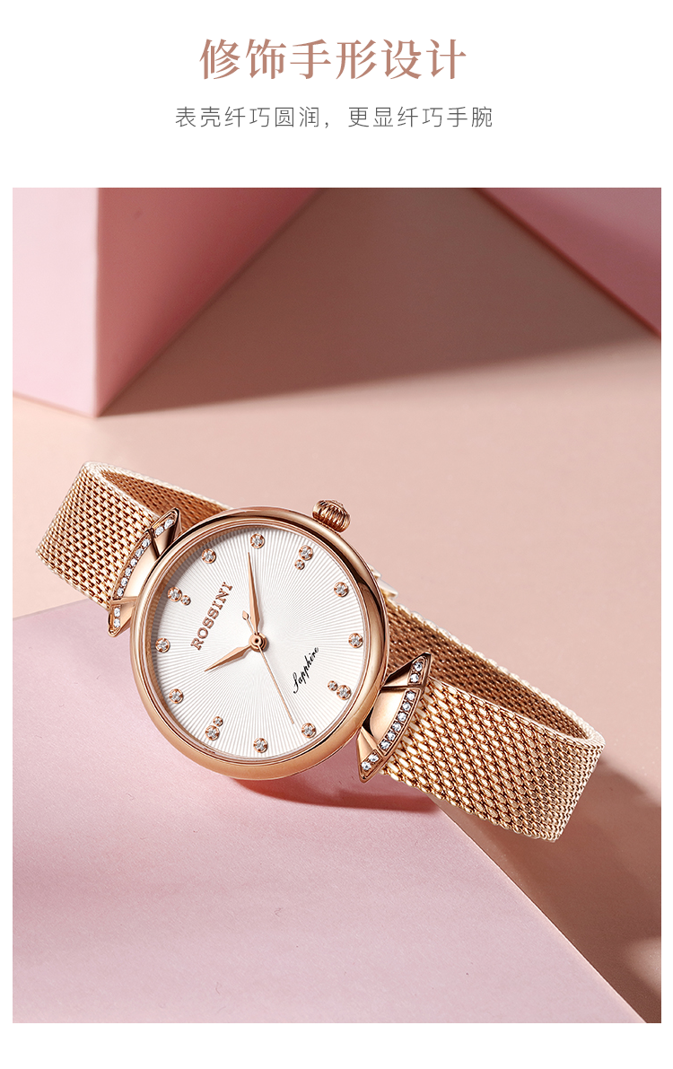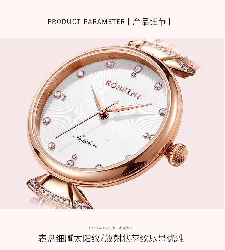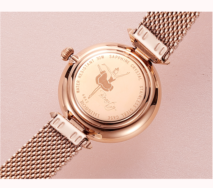 Rossini罗西尼 典美系列石英手表时尚简约潮流小礼裙白盘金色编织带女表6842G01F(只) 白色