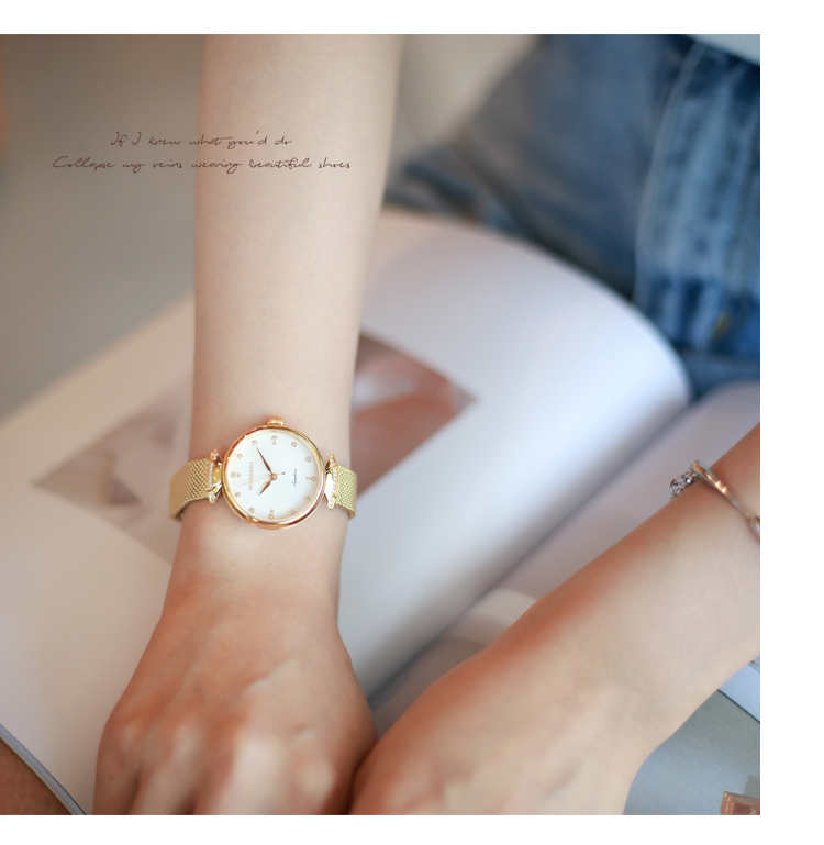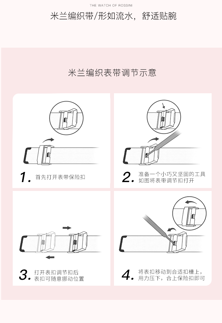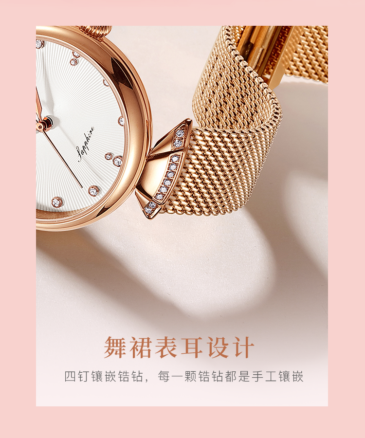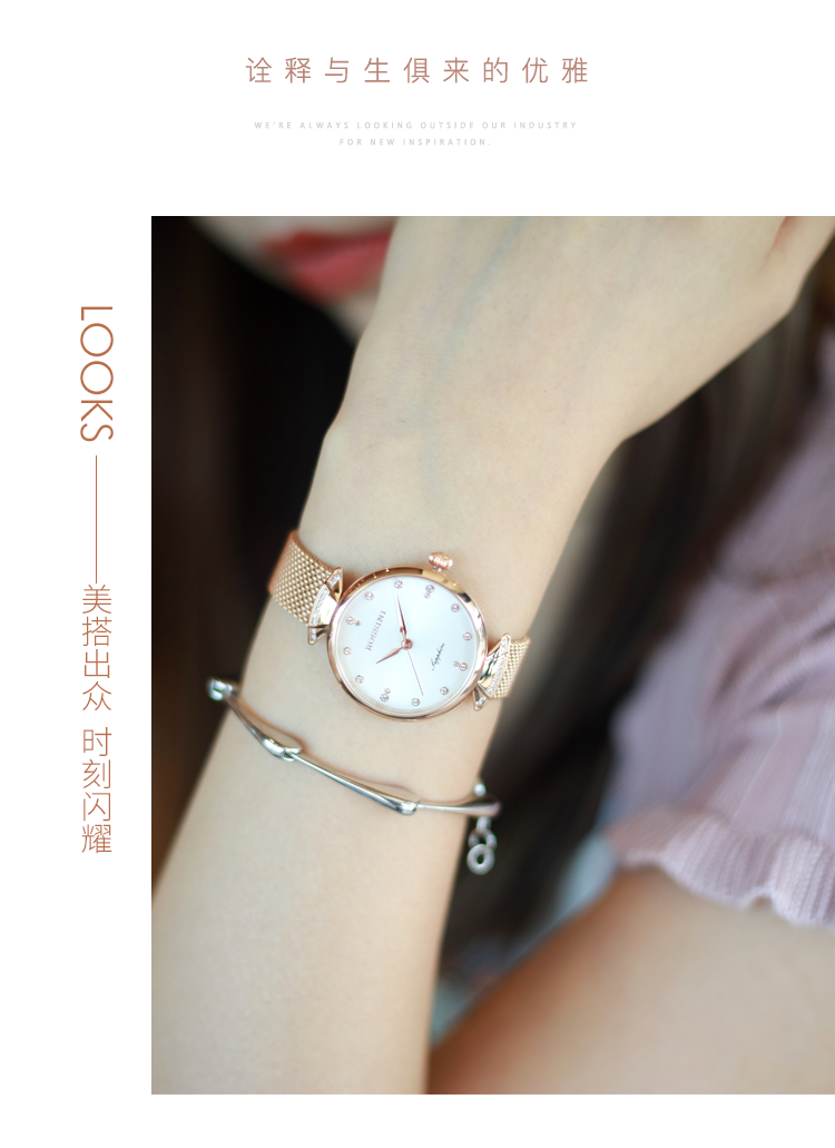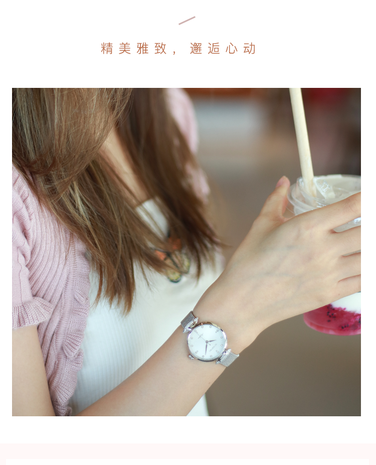 Rossini罗西尼 典美系列石英手表时尚简约潮流小礼裙白盘金色编织带女表6842G01F(只) 白色