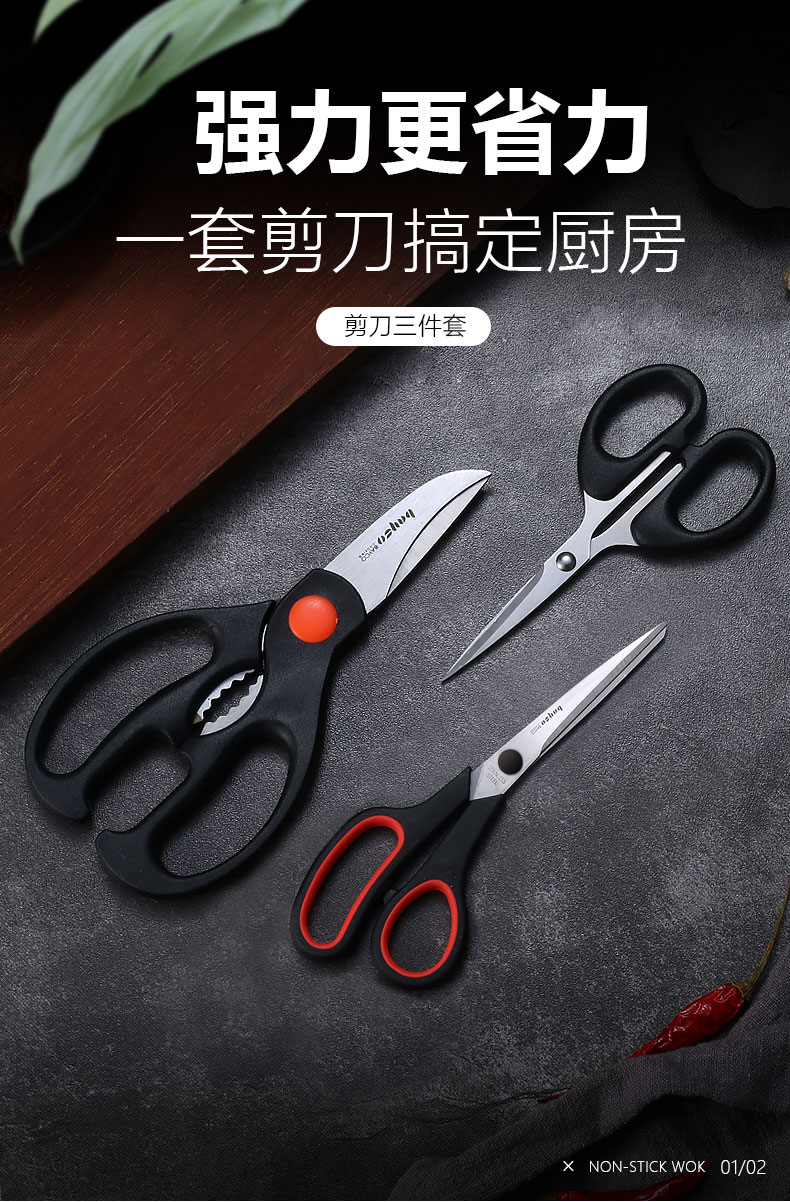 拜格 BAYCO 家用剪刀套装 剪刀三件套 【TZ28203】(单位:套) 黑色