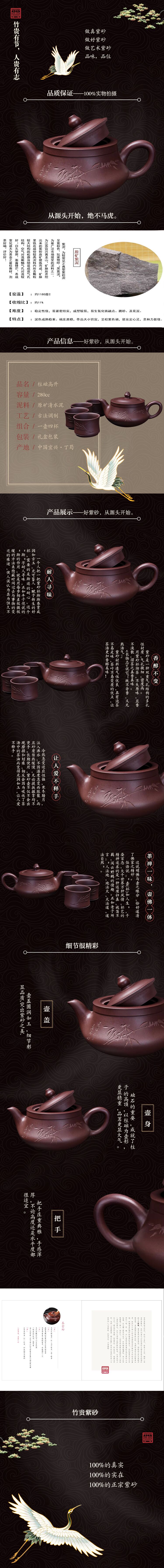 竹贵紫砂柱础高升套装 紫褐色