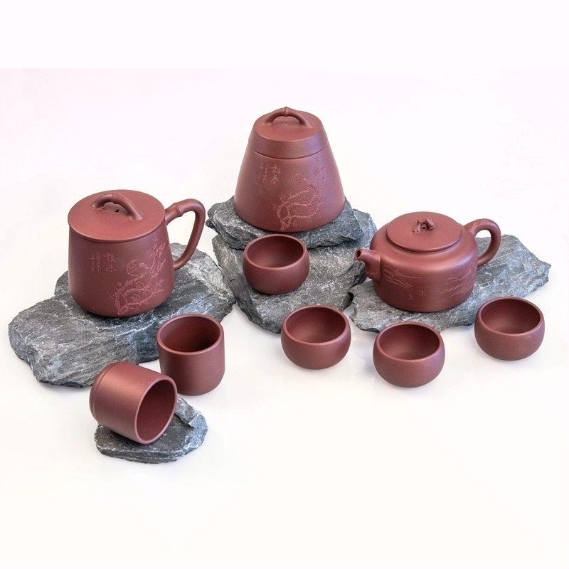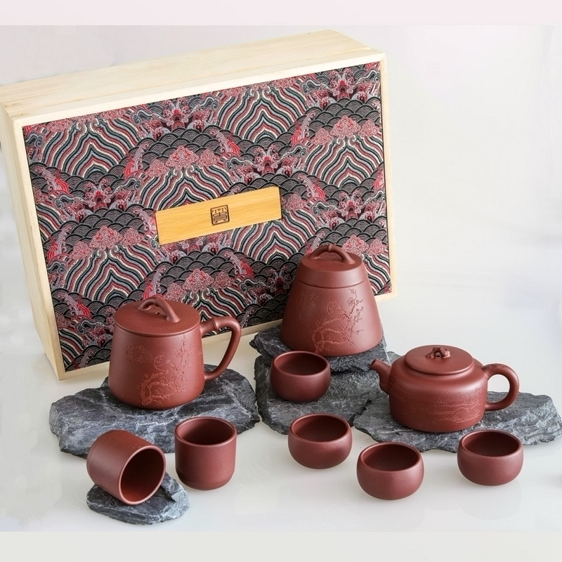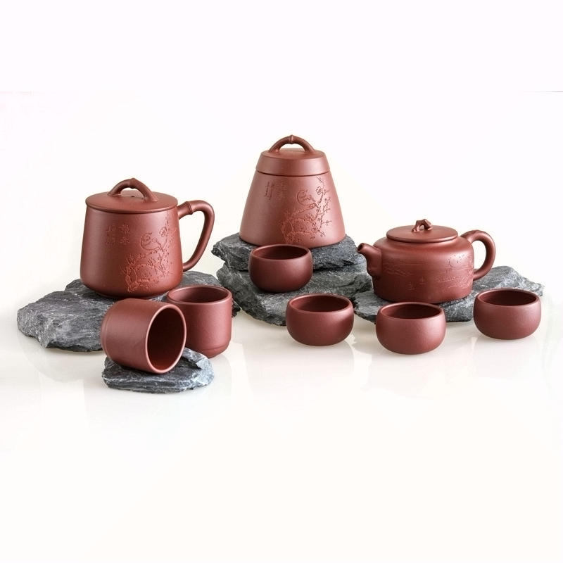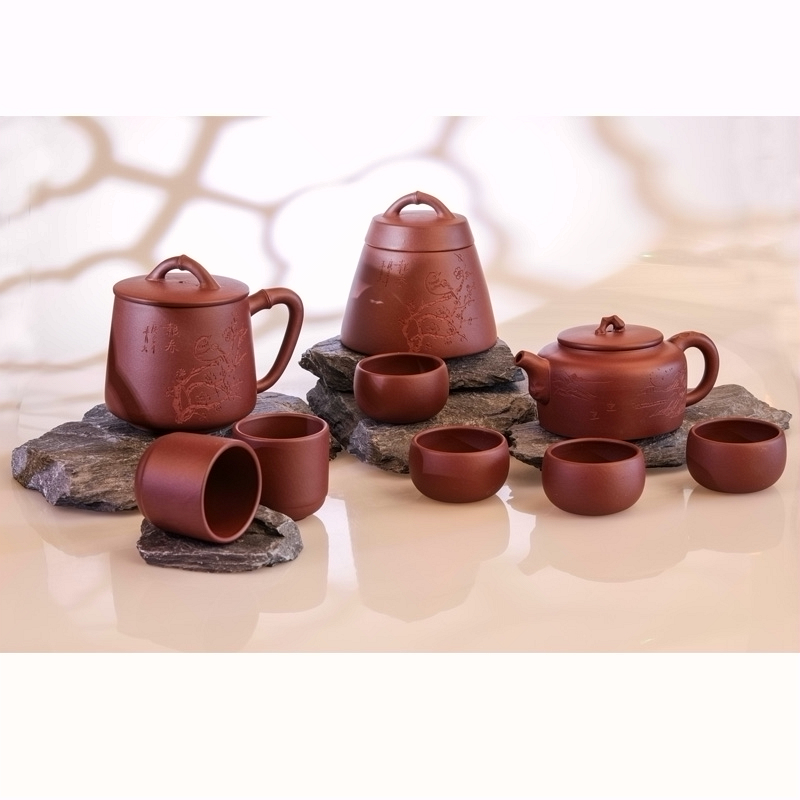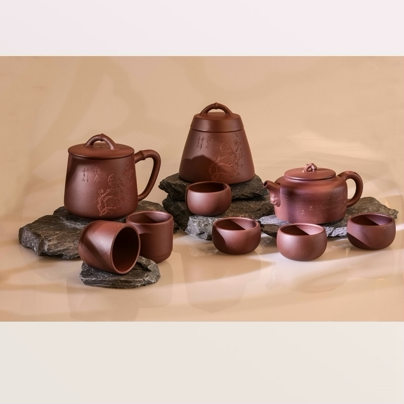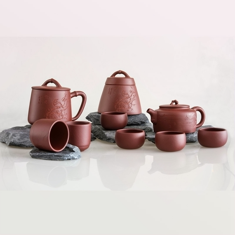 竹贵紫砂九件套 红褐色