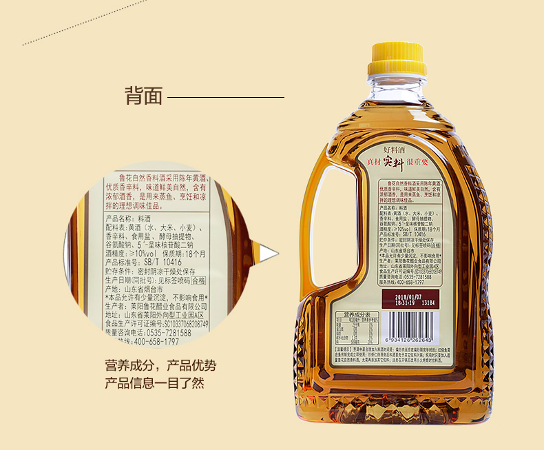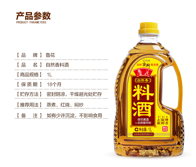 鲁花 烹饪黄酒/自然香料酒 1L (单位:瓶) 褐色