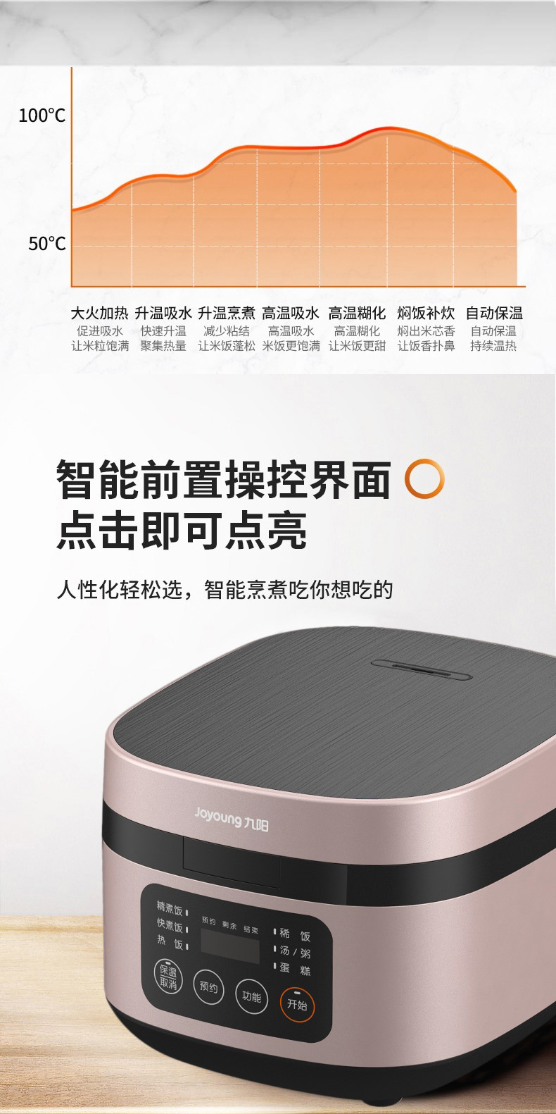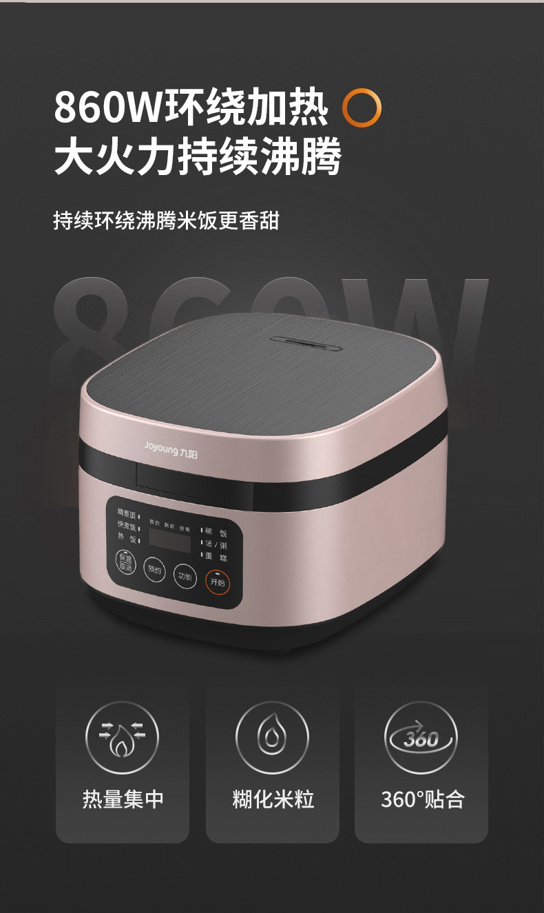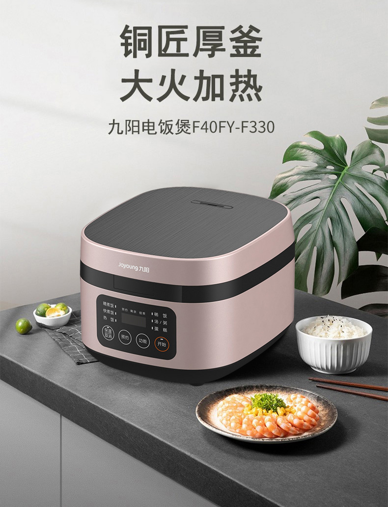 九阳(Joyoung) 电饭煲家用智能预约电饭锅大火力铜匠厚釜内胆4L F40FY-F330(单位:个) 粉色