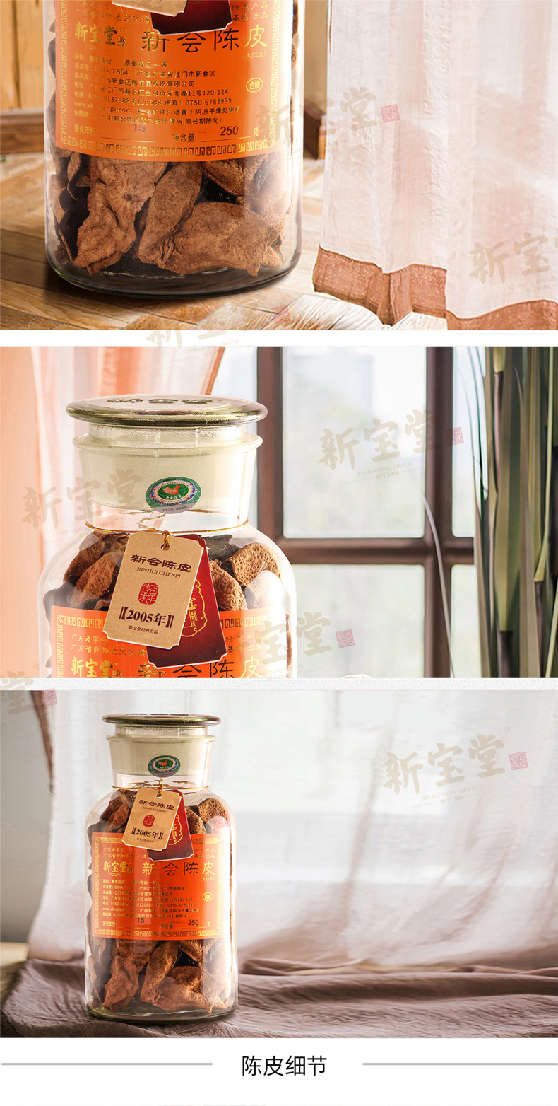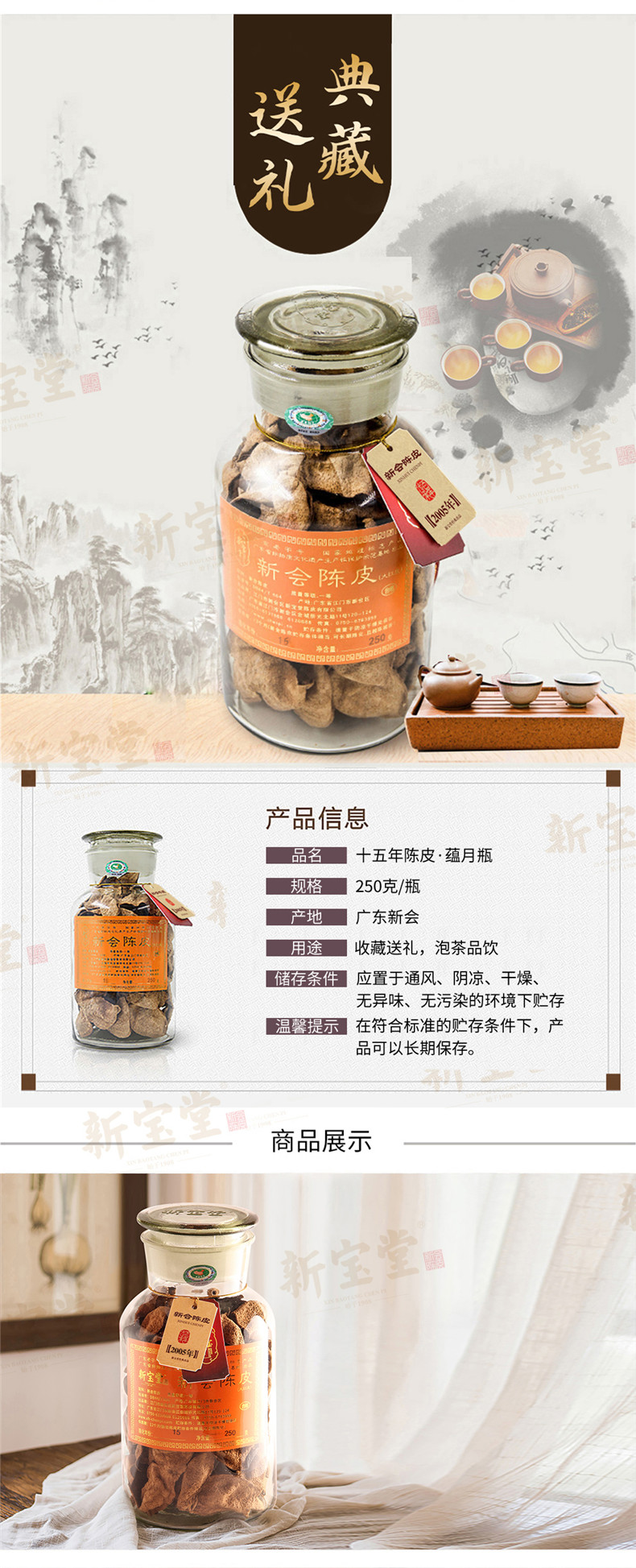 新宝堂十五年新会陈皮蕴月瓶礼盒15年陈皮泡茶玻璃瓶礼盒250克 无色