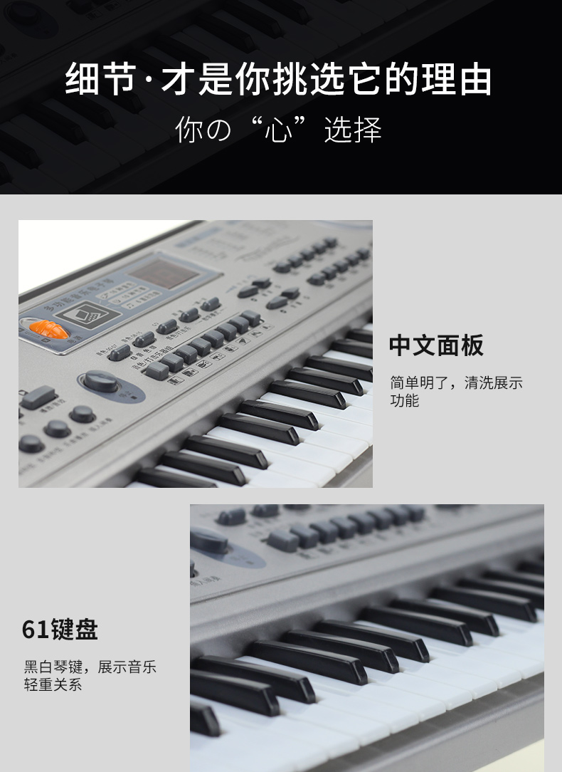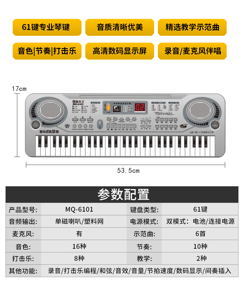 婴侍卫 儿童61键入门型演奏电子琴 MQ-6101 如示