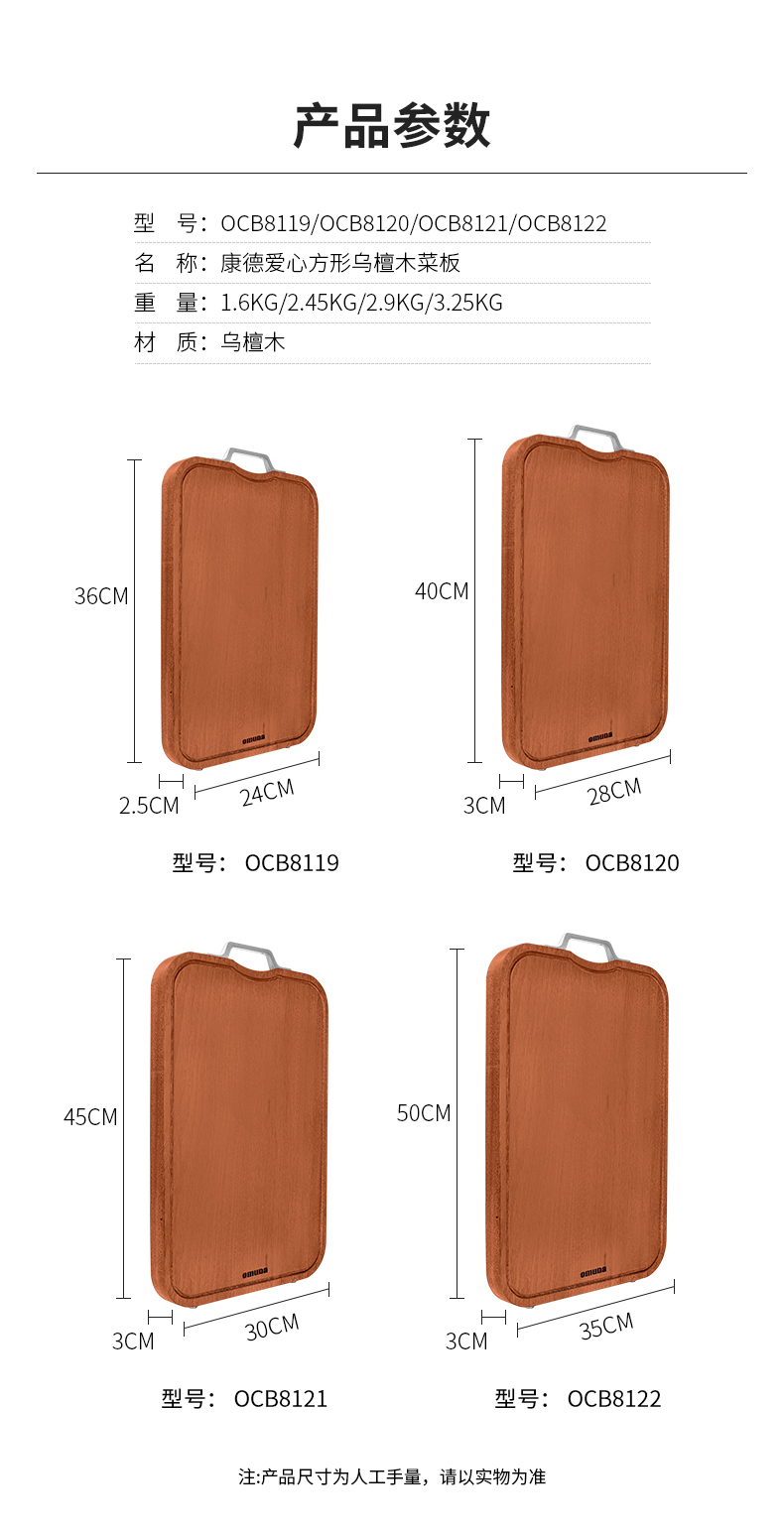 欧美达 康德爱心方形乌檀木菜板19# OCB8119 拿铁色