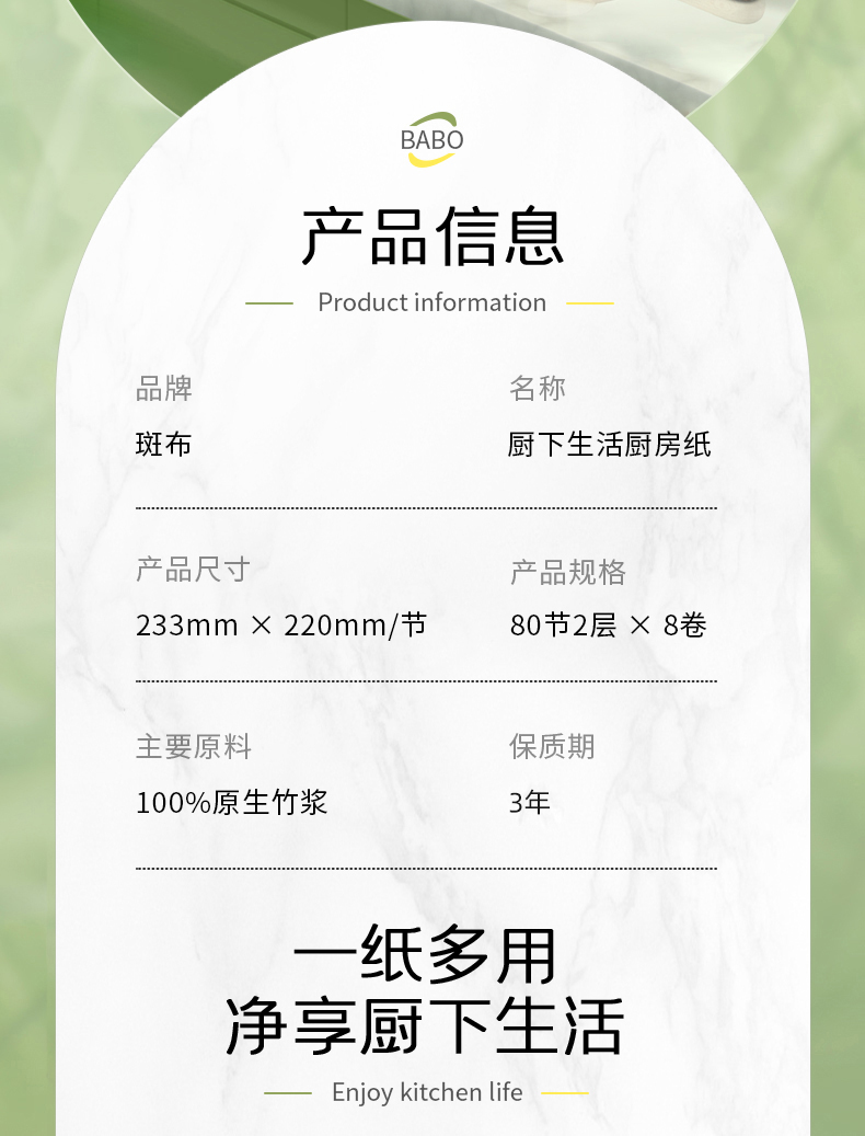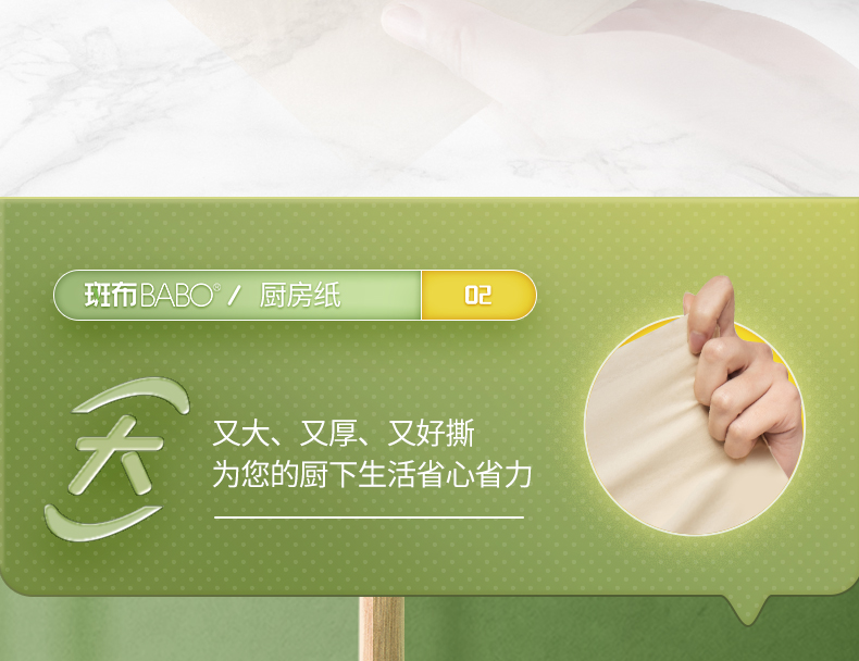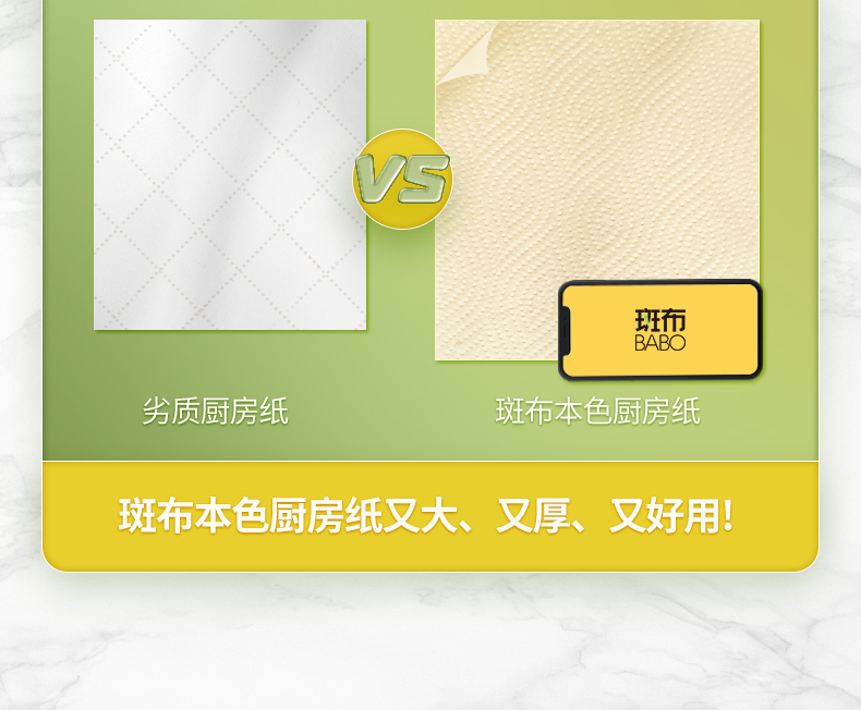 斑布(BABO)厨下生活系列厨房纸巾 2层80节8卷/提 黄色