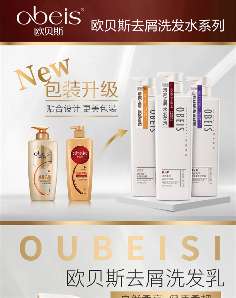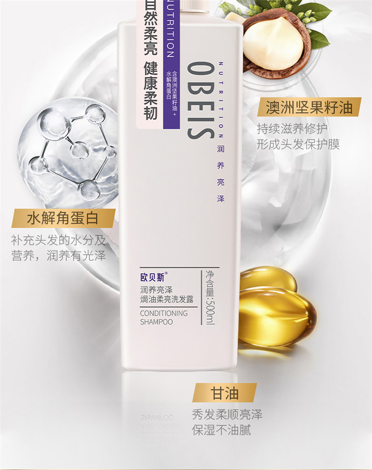 欧贝斯焗油柔亮洗发露(润养亮泽型)500ml 瓶 本白色