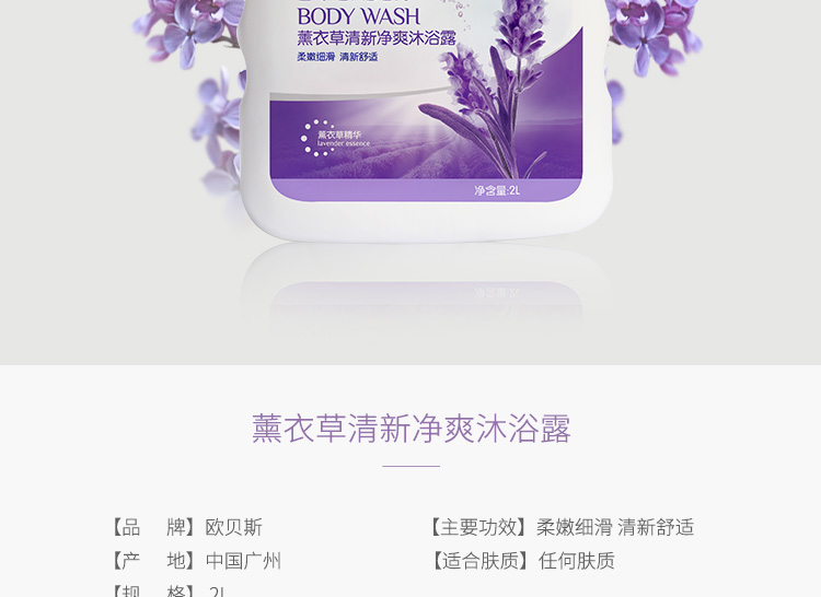 欧贝斯薰衣草清新净爽沐浴露2L