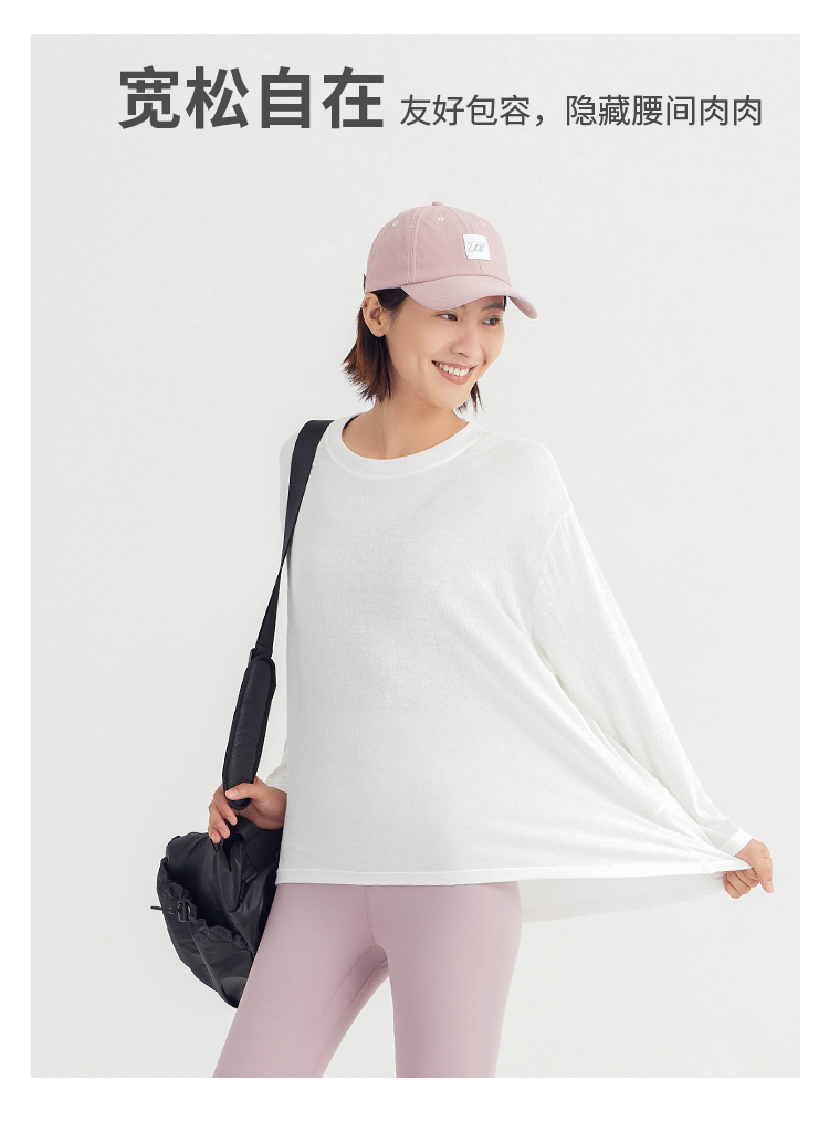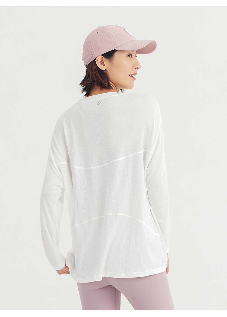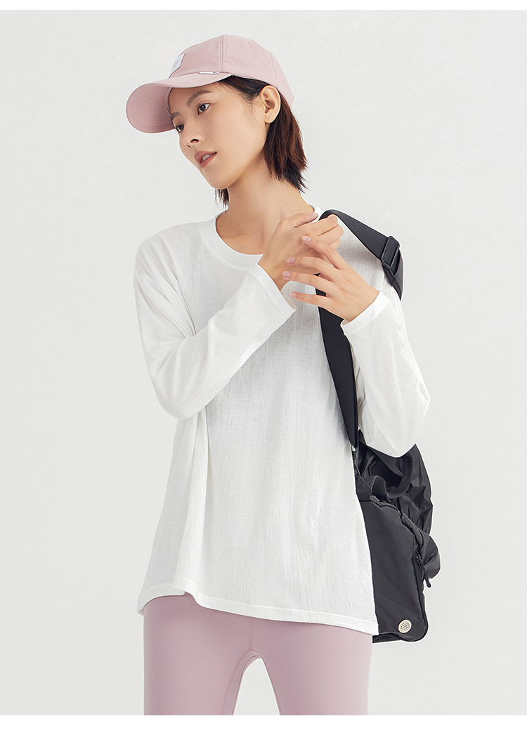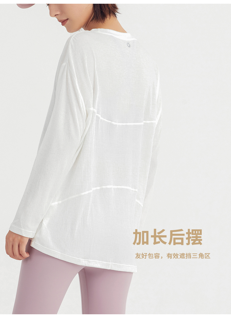 唯卡洛vincrox 瑜伽t恤女弹力透气速干宽松高弹运动健身服长袖上衣21119 香雪白 S
