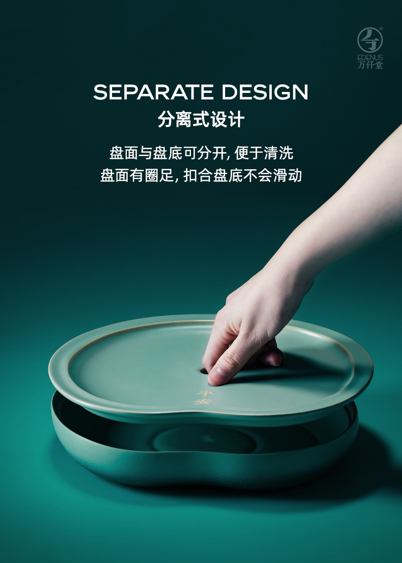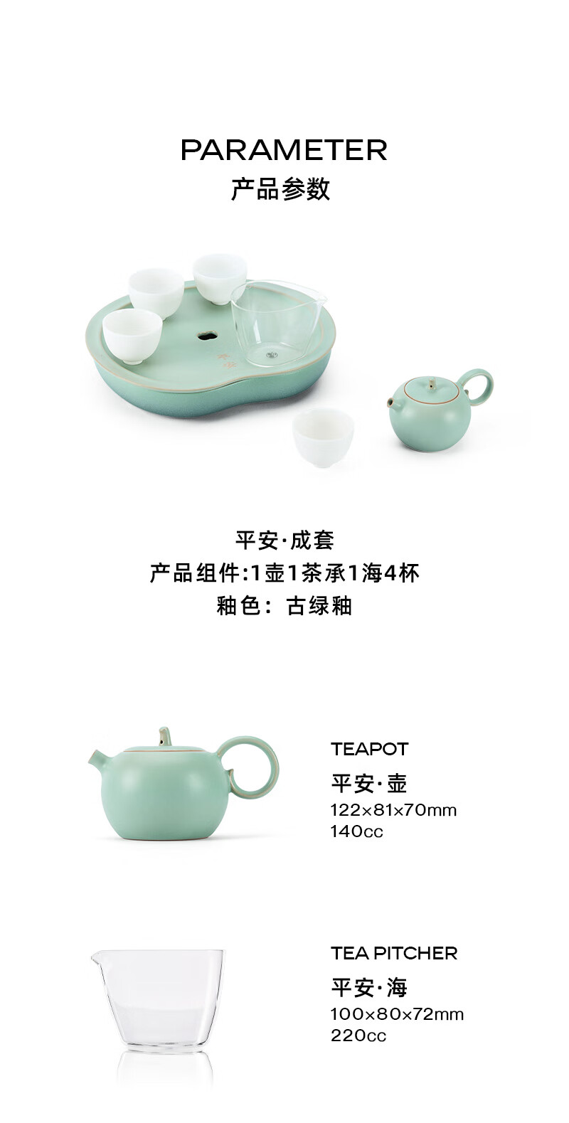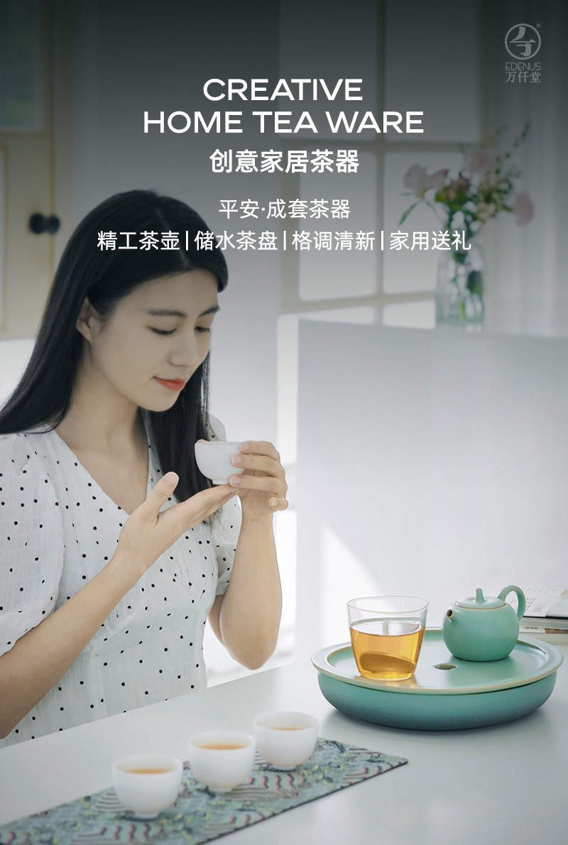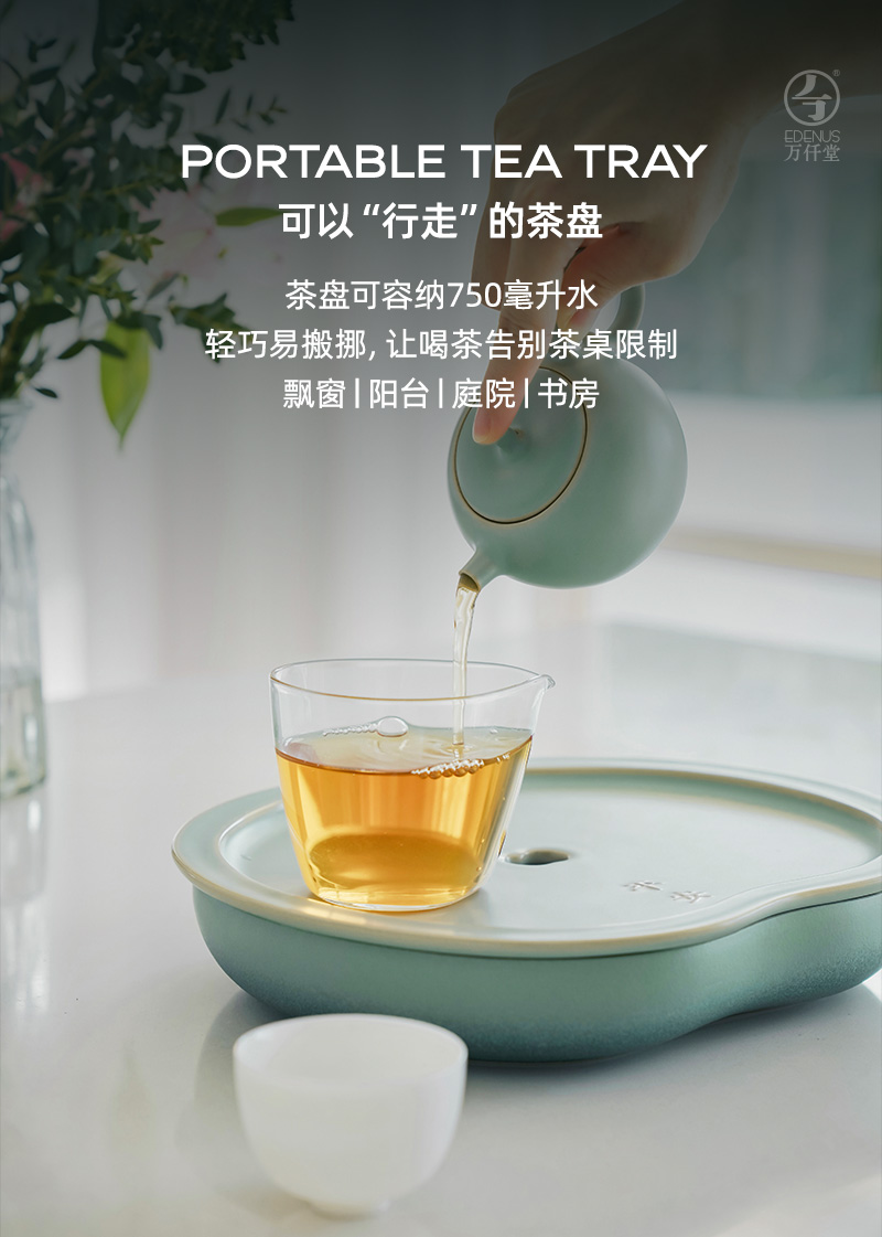 万仟堂(Edenus)茶具高档整套茶具茶盘平安功夫茶具套装 1壶1海4杯1茶盘 单位:套