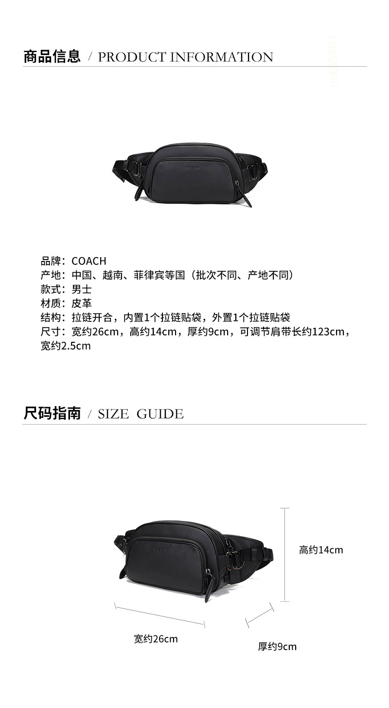 Coach 蔻驰男士专柜款HITCH系列皮革胸包斜挎包腰包黑色Z11100482642(单位:个) 黑色