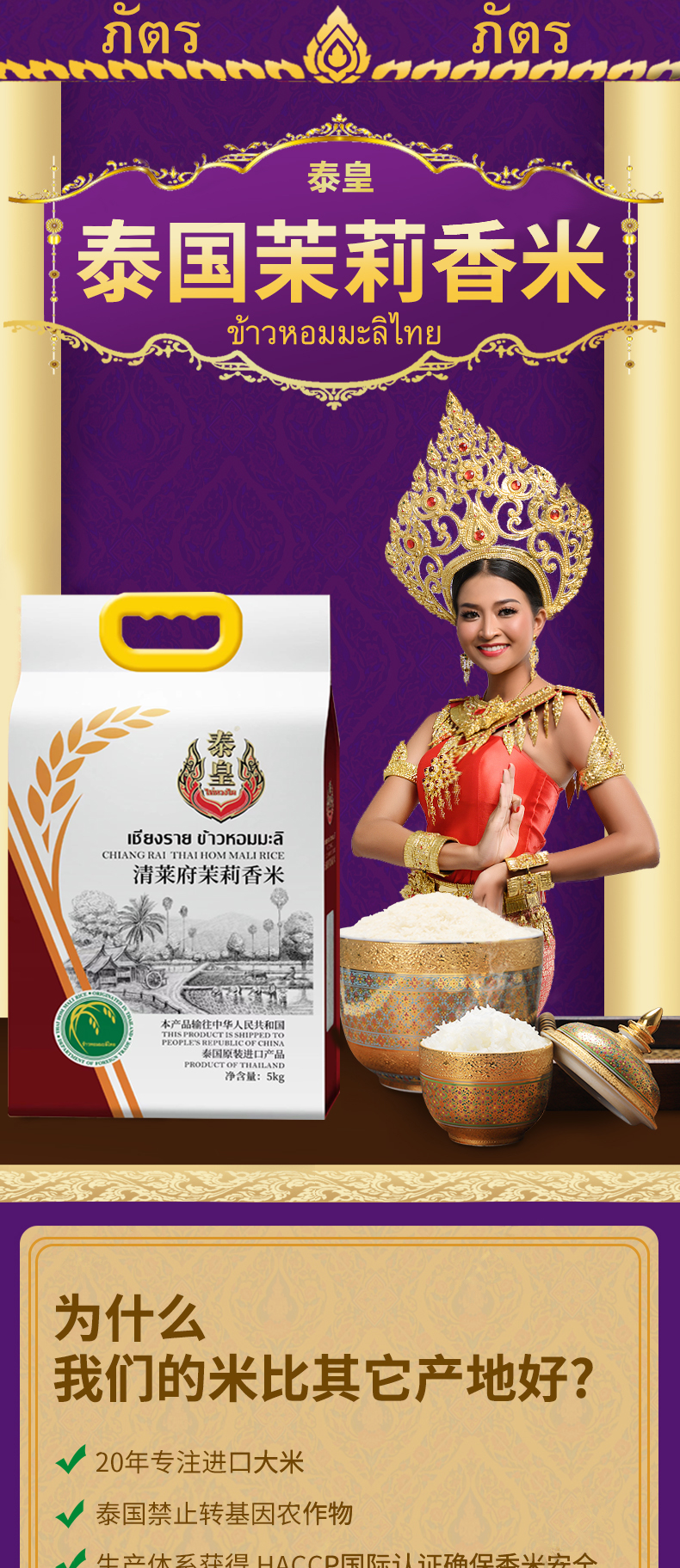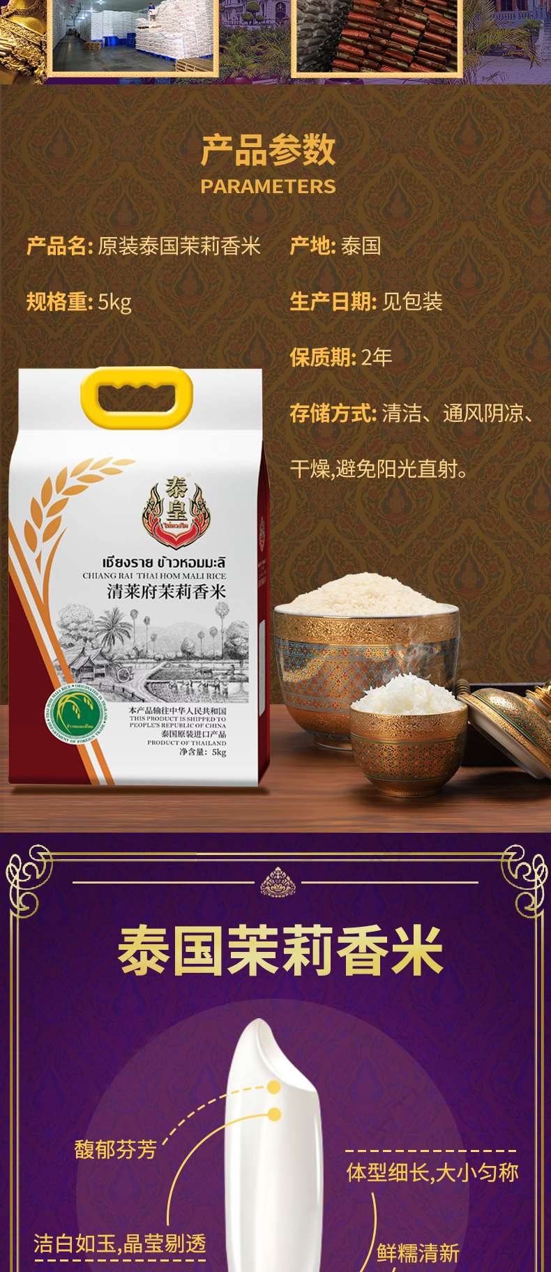 泰皇 清莱府茉莉香米5kg(单位:袋) 白色