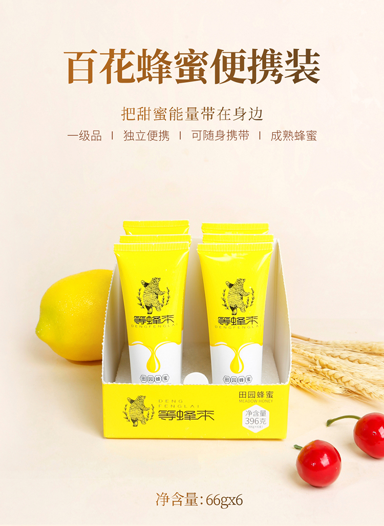 等蜂来 便携蜂蜜一级田园蜂蜜66g*6支/盒