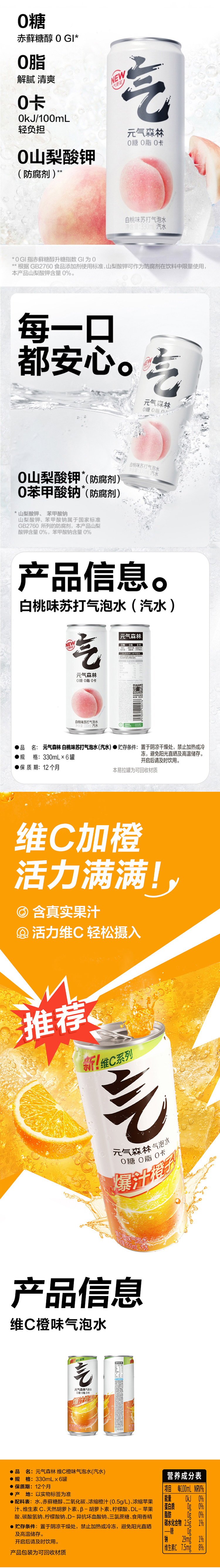 元气森林 爆汁橙子味+百桃味 330ml*6罐*2组 0糖0脂0卡饮料 混色(单位:组)