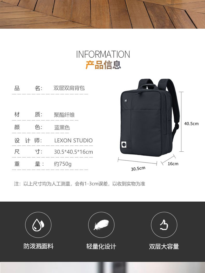 乐上 LEXON APOLLO双层背包 LNB0734N08T单位:个 蓝黑色