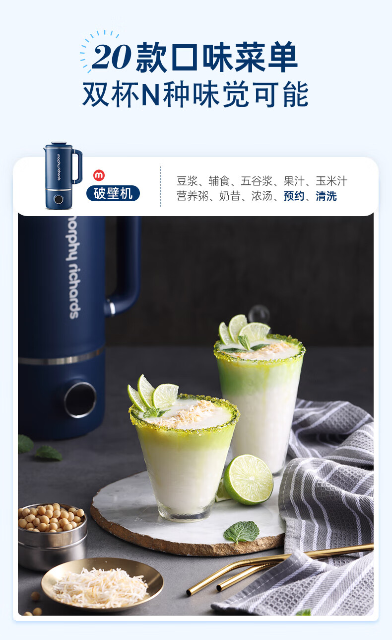 摩飞电器(Morphyrichards) 多功能破壁豆浆机 MR8200 600ml 蓝色(单位:个)
