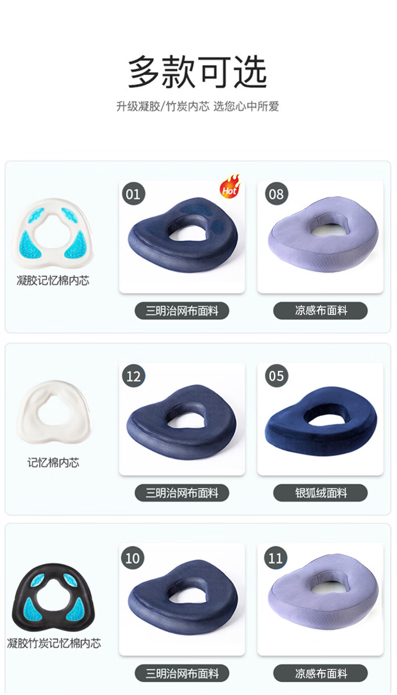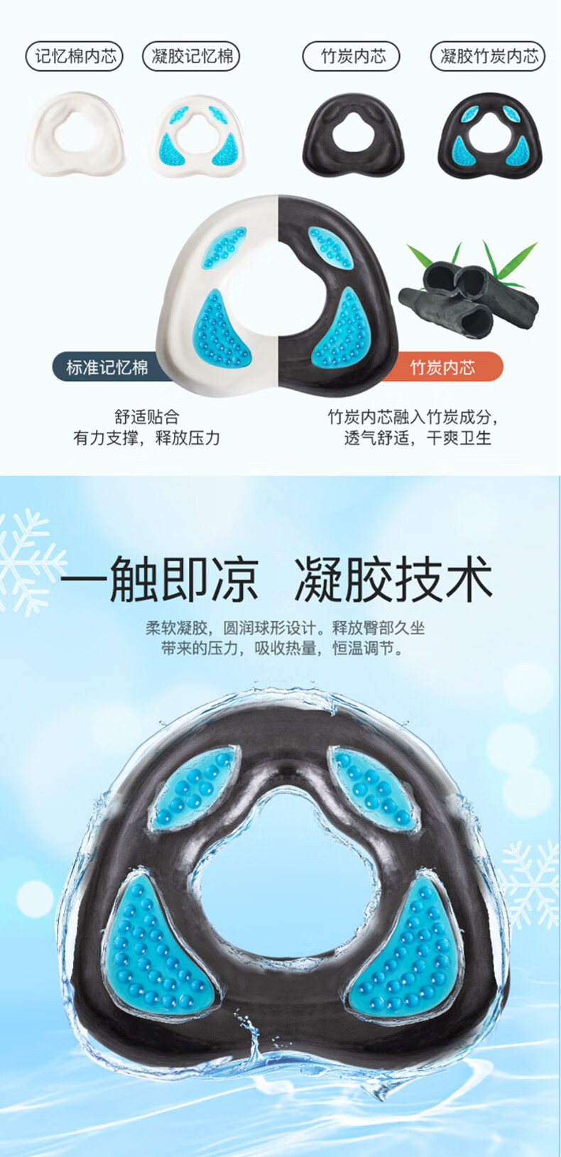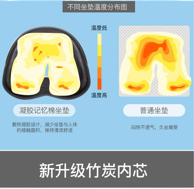 爱护佳(aiHuJia)防褥疮坐垫 孕妇臀部尾椎骨减压 海绵坐垫10 三明治网布凝胶竹炭 1个
