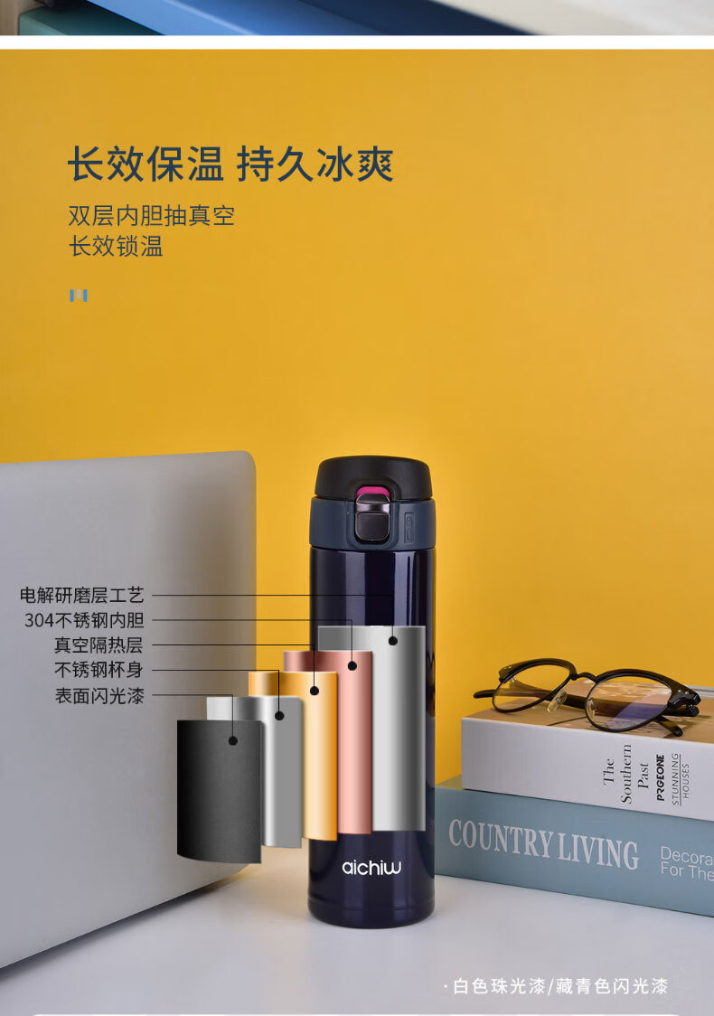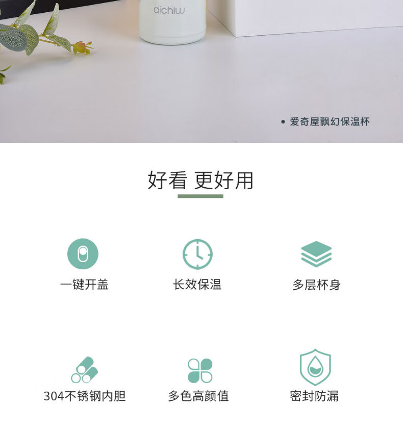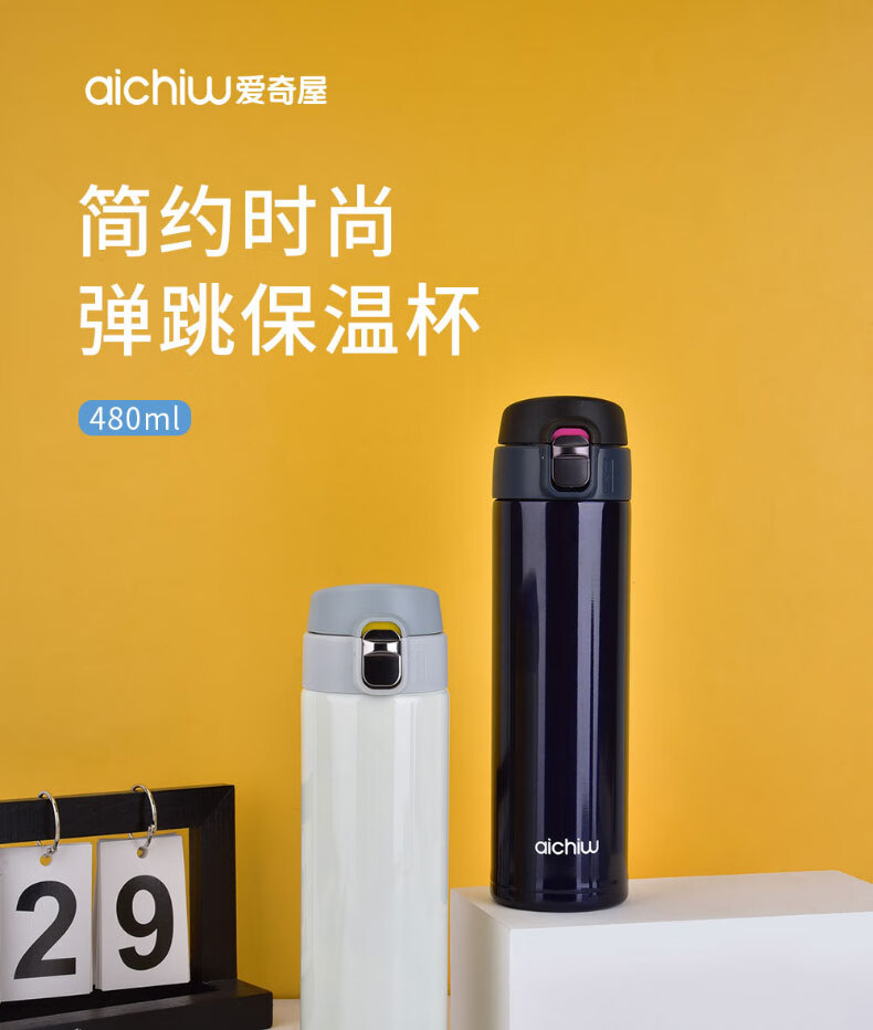 爱奇屋 飘幻保温杯 AI-D80 480ml 颜色随机 (白色+蓝色)