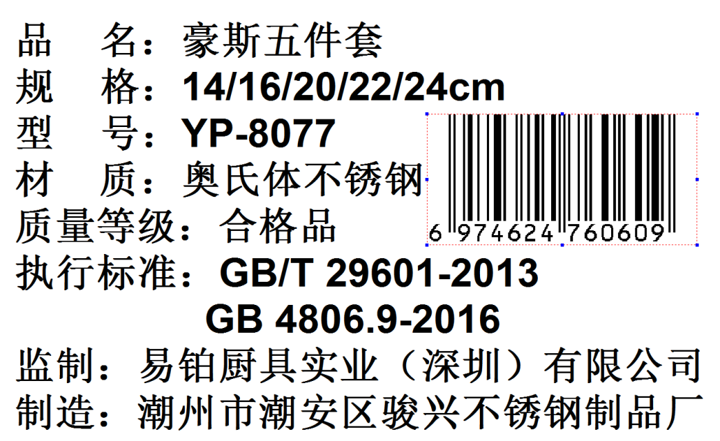 易铂 豪斯五件套盆 14/16/20/22/24cm YP-8077(单位:套) 不锈钢色