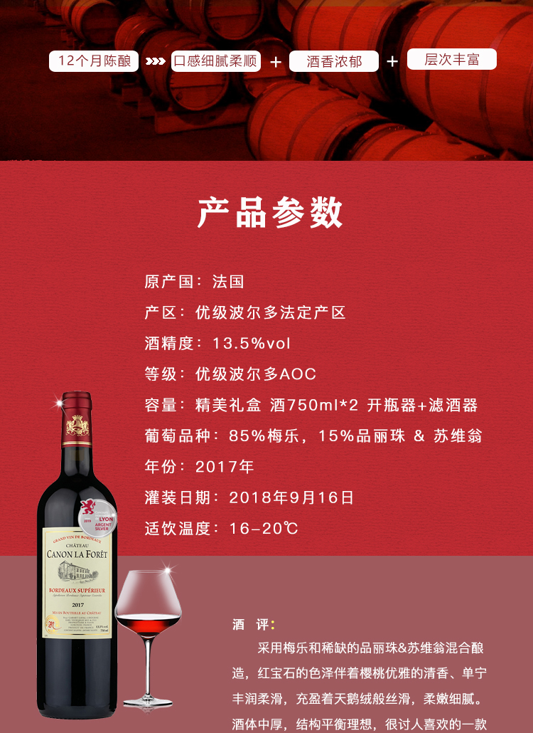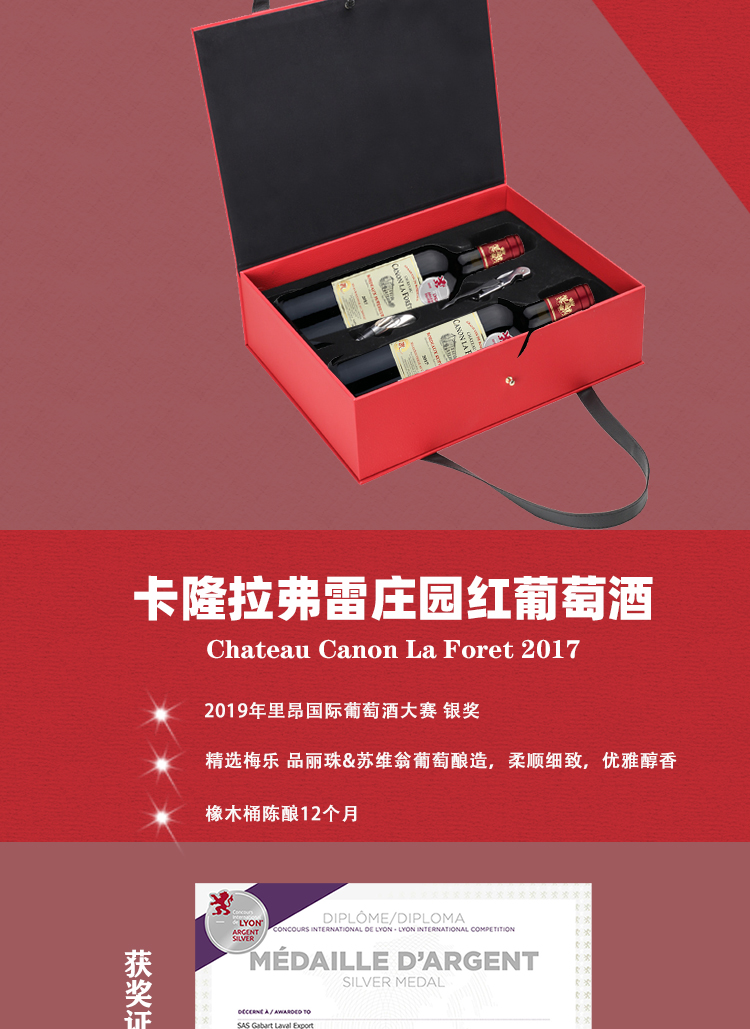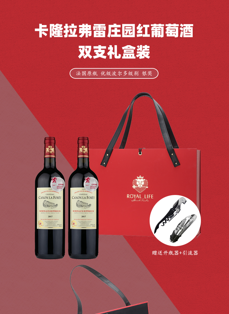 法国原瓶进口国际大赛银奖卡隆拉弗雷酒庄2017红葡萄酒750ml*2礼盒装 750ml*2/盒