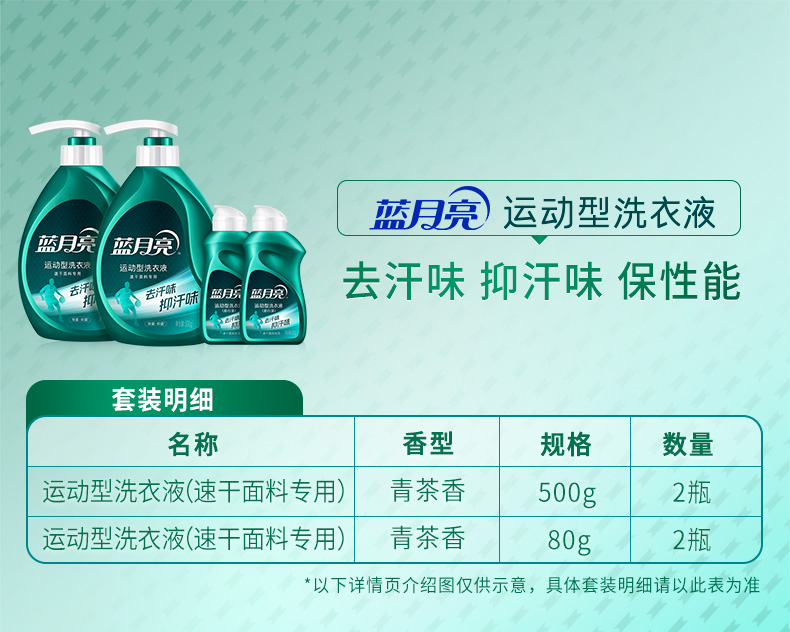 蓝月亮速干运动洗衣液500g*2+80g瓶*2 80002098(单位:套) 绿色
