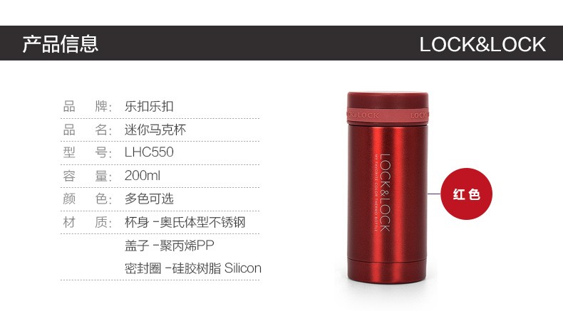 乐扣乐扣(lock&lock)不锈钢纤巧便携保温杯茶水杯车载商务杯子LHC550(200ml) 红色