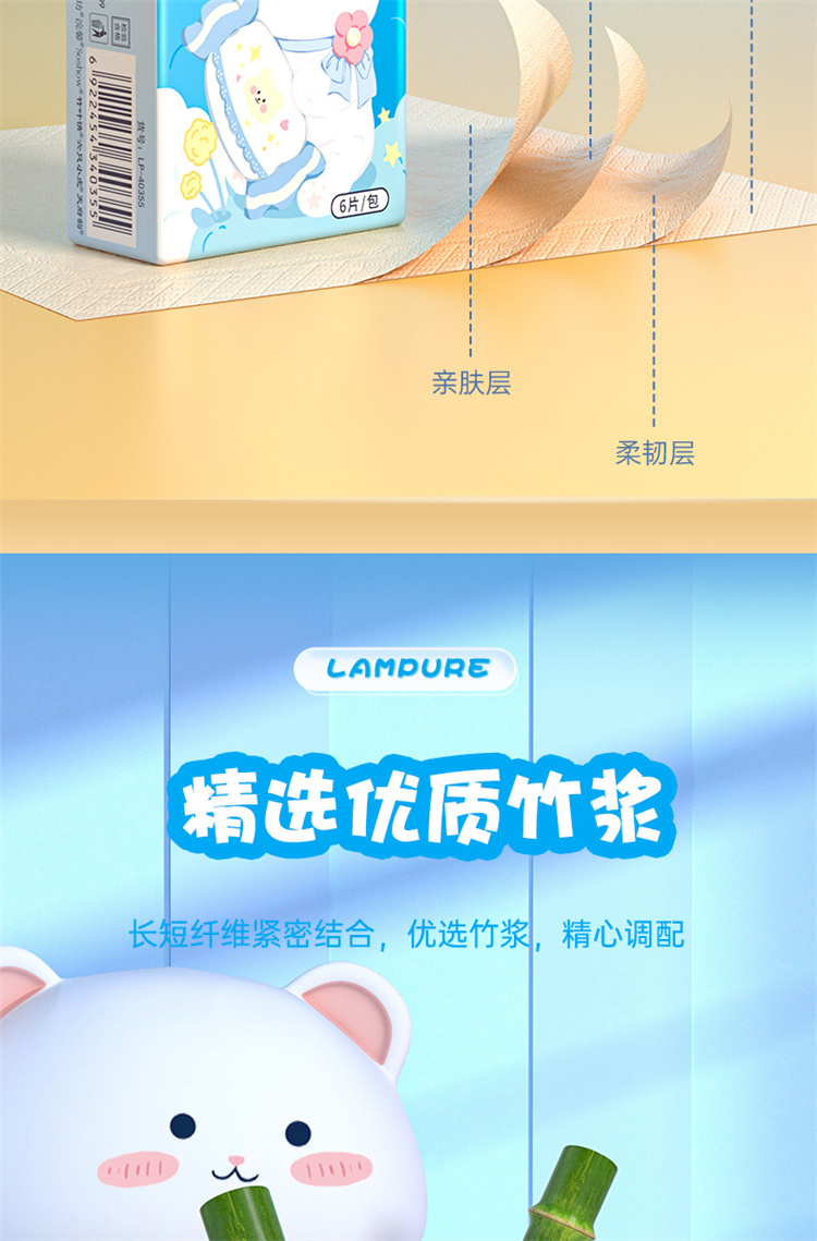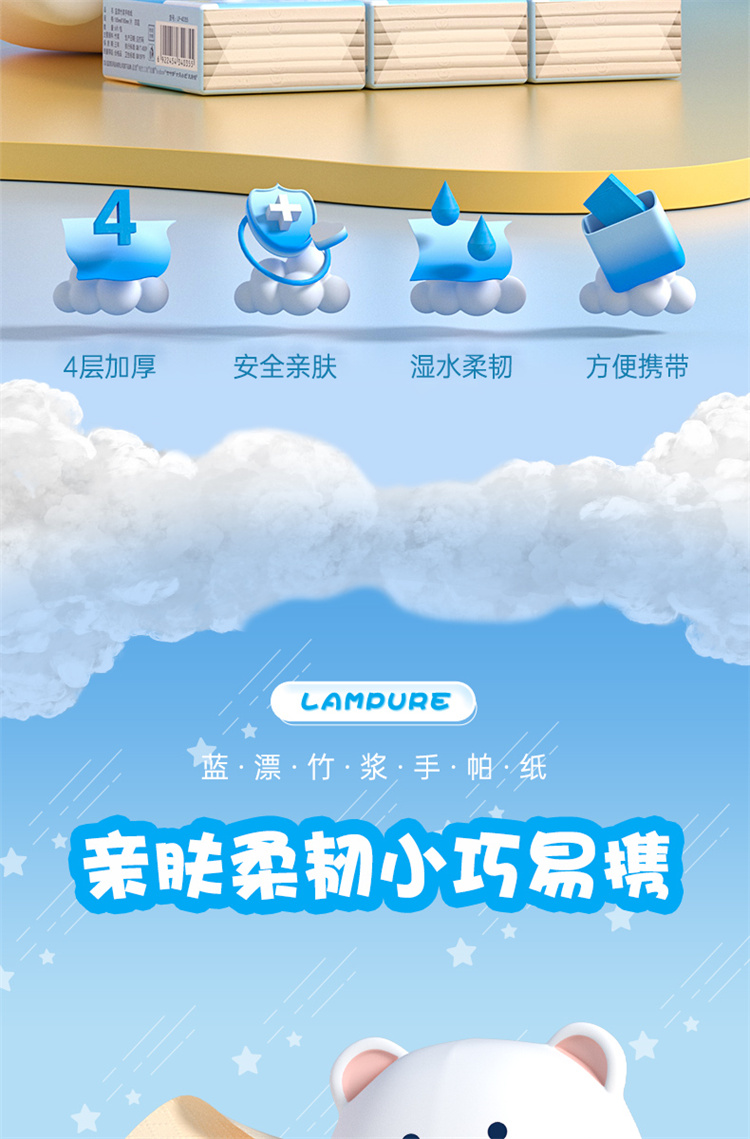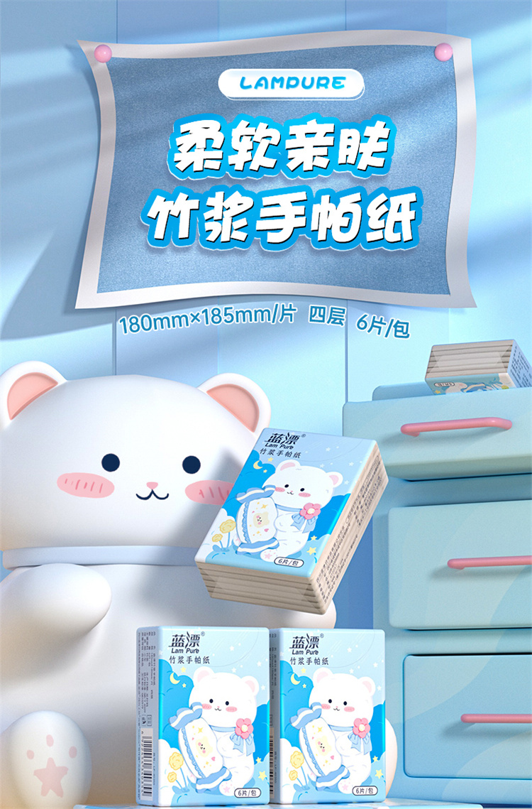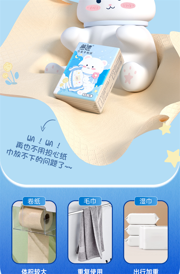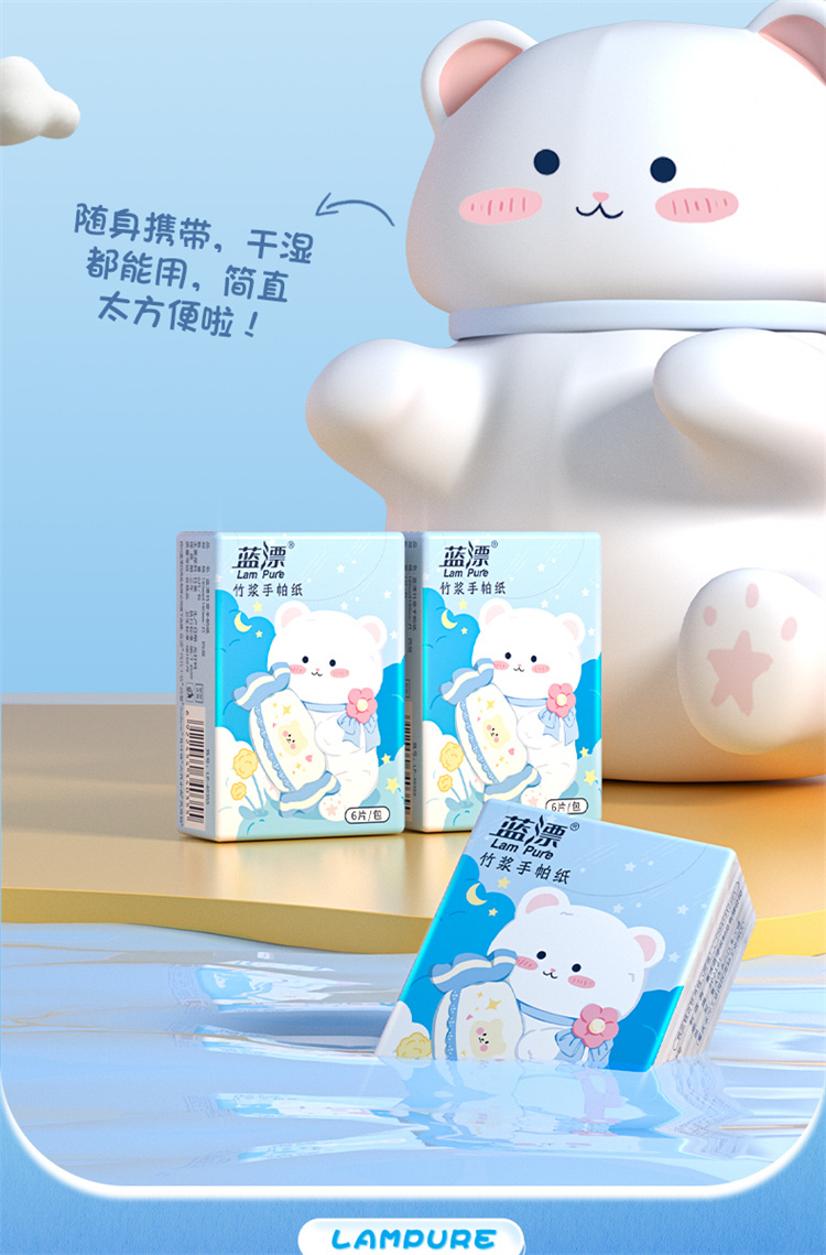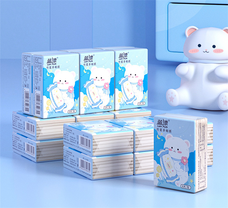 蓝漂竹浆手帕纸 LP-40355本色迷你手帕纸60包 蓝色