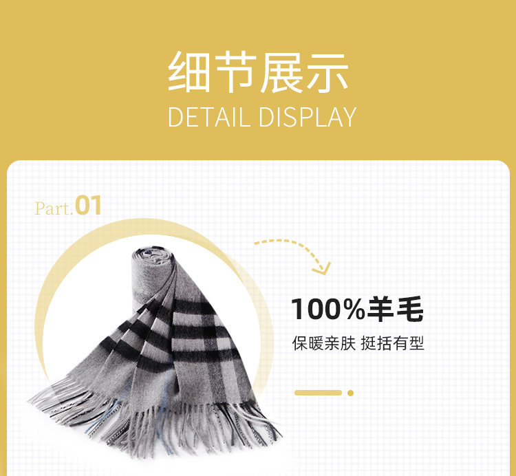 京四界 羊毛围巾 JSJD4-003 格子灰