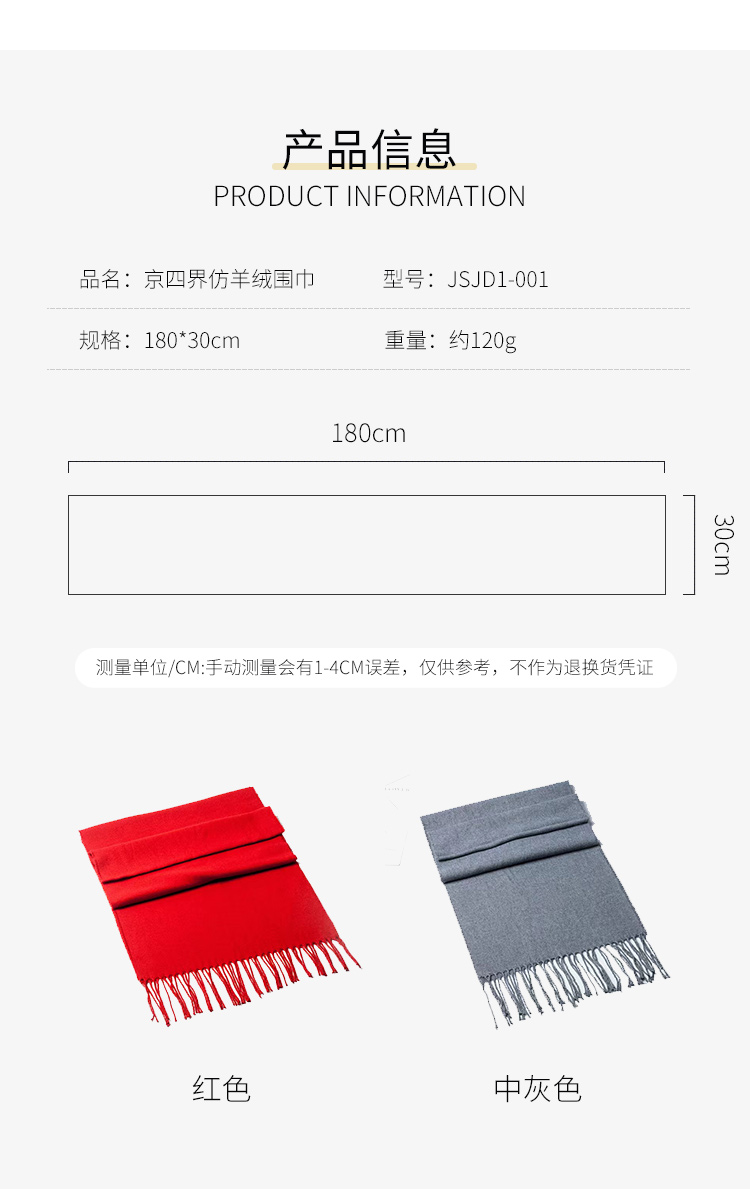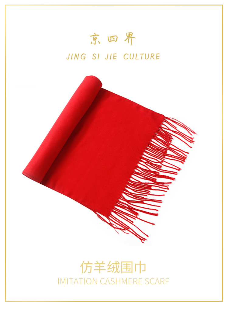 京四界 仿羊绒围巾 JSJD1-001 红色/灰色