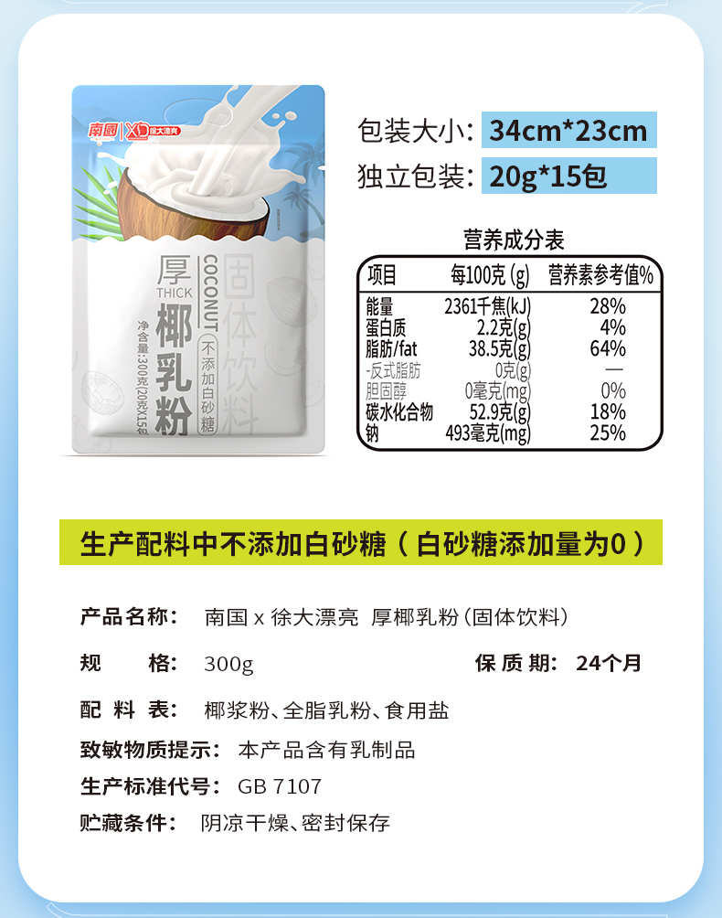 南国(nanguo) 厚椰乳粉300g*1袋(单位:袋) 白色