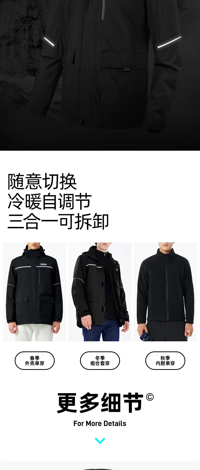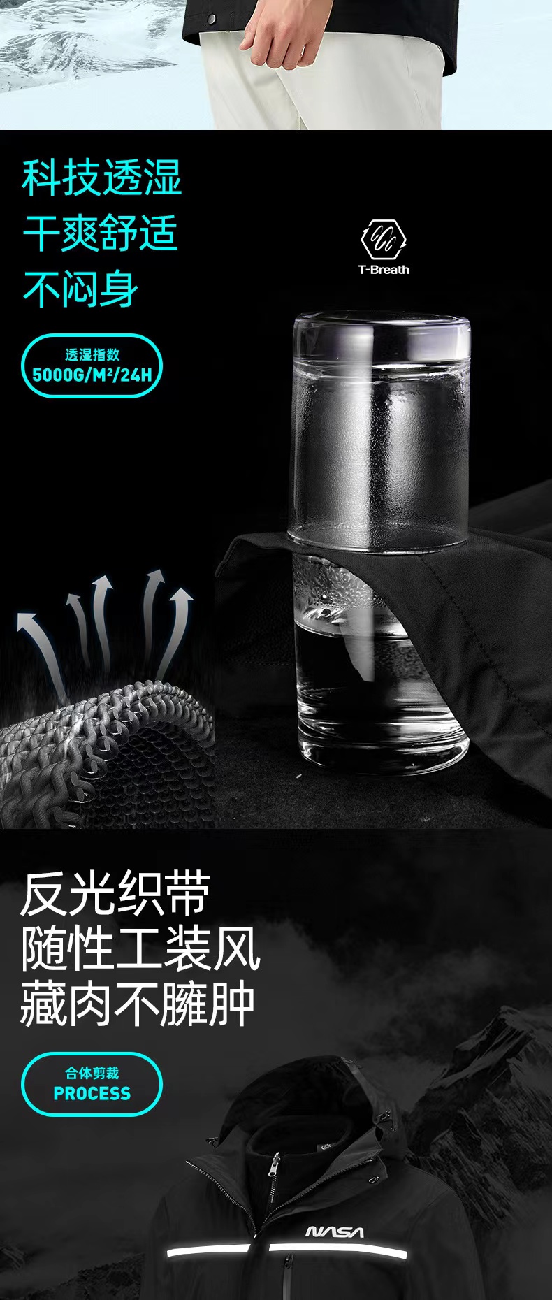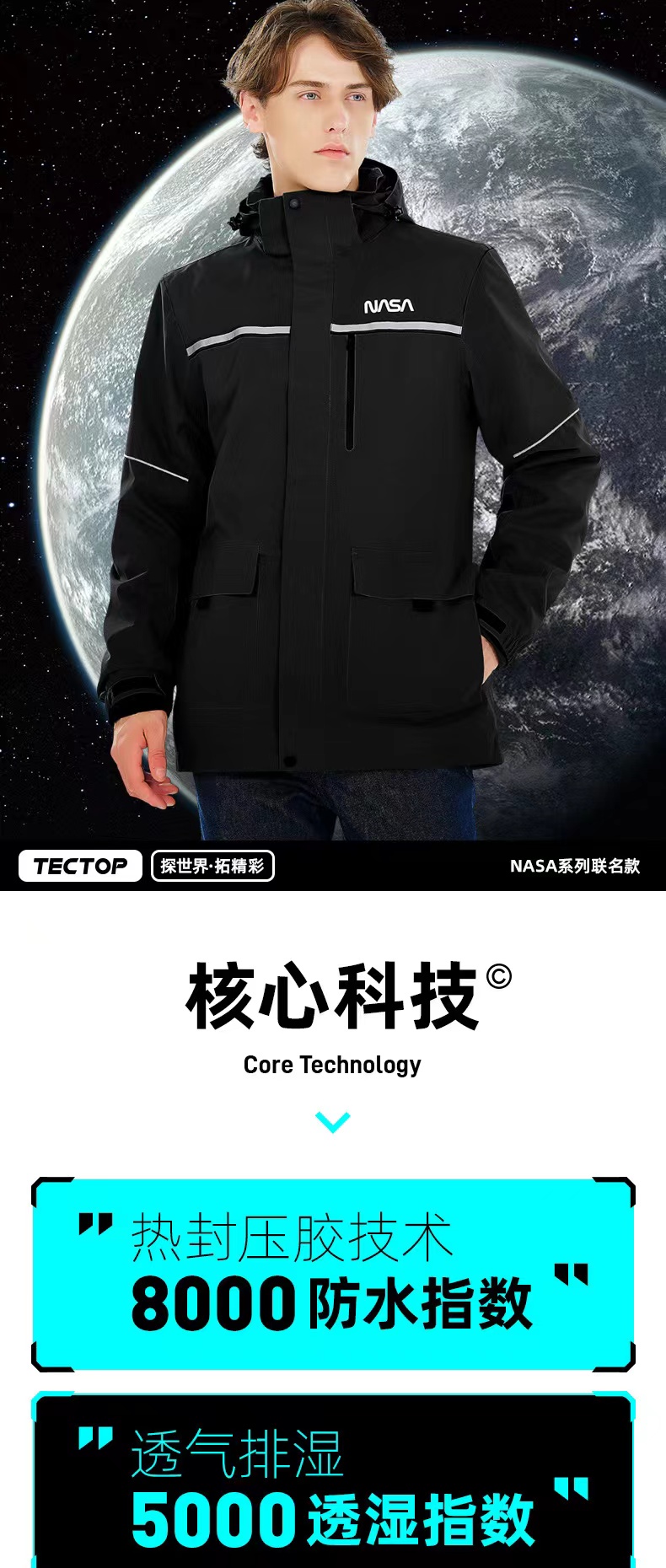 探拓 女式套绒冲锋衣黑色/件 黑色