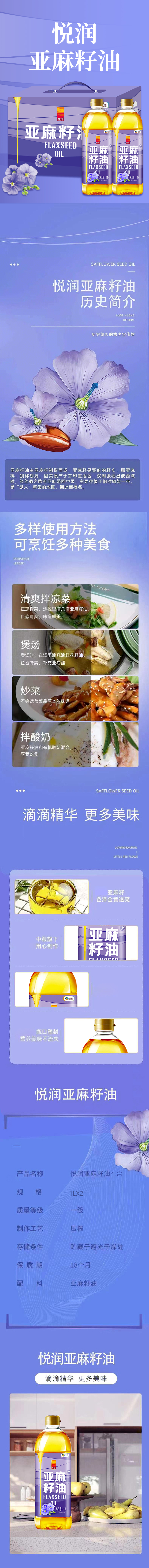 中粮 悦润亚麻籽油礼盒 食用油 1L*2 紫色(单位:盒)