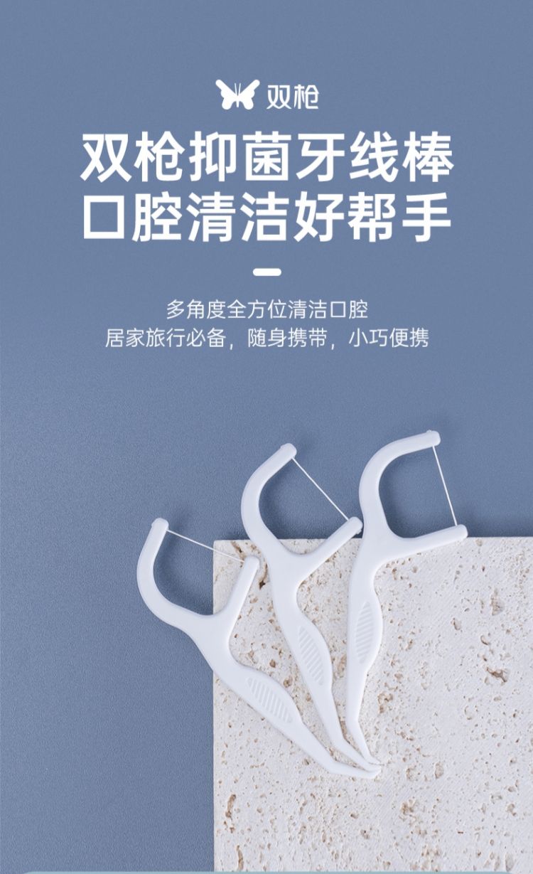 双枪 银离子抑菌牙线棒120支*2盒+双线牙线棒套装100支*2袋 套装 象牙色