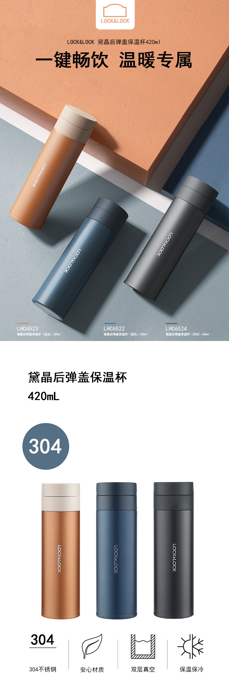 乐扣乐扣(LOCK&LOCK)LHC6524FU 黛晶后弹盖保温杯 灰色