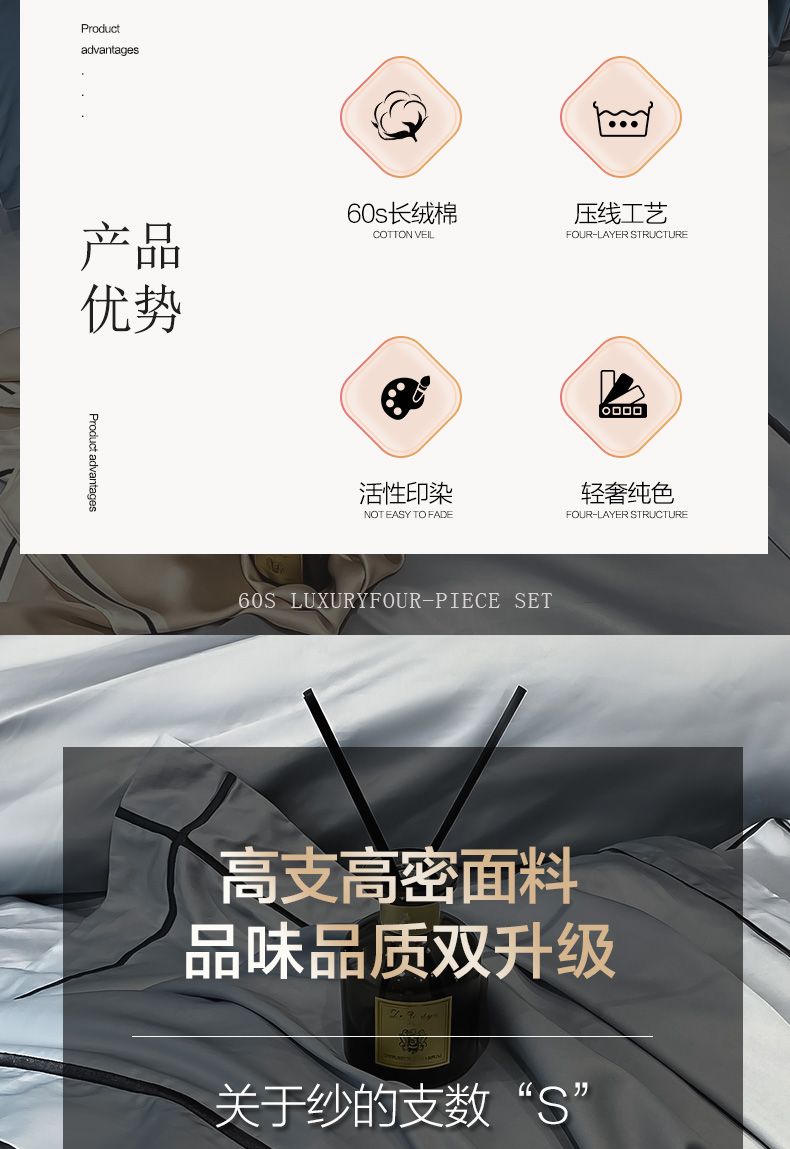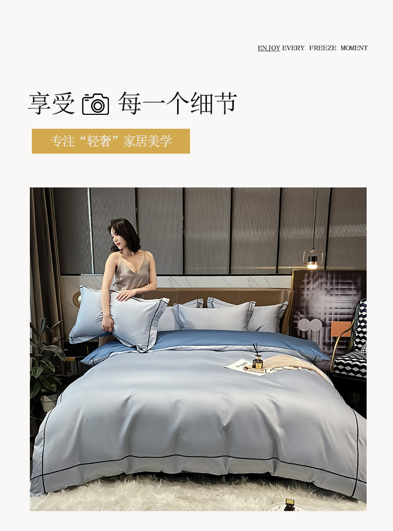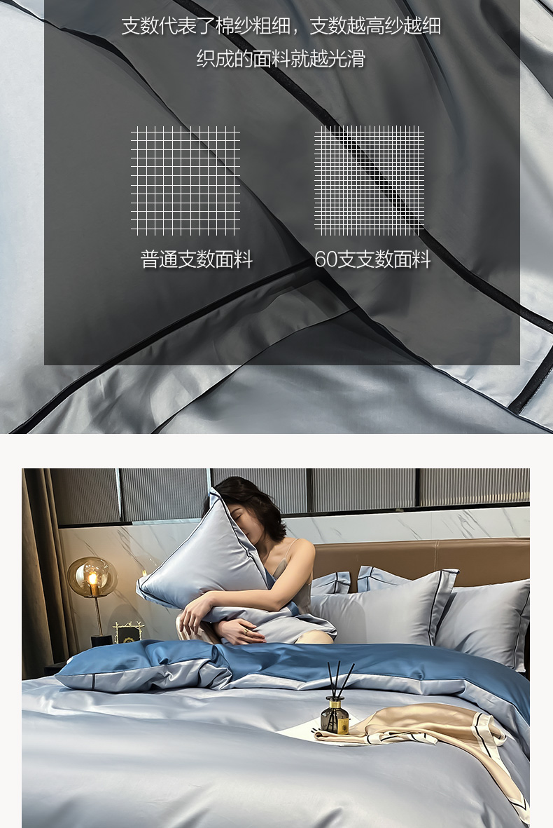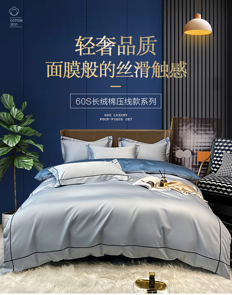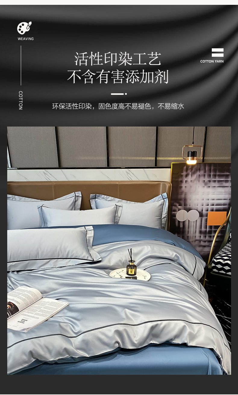 Fazeya/彩羊家纺60S奢品长绒棉四件套天空蓝1DB21313 60S奢品长绒棉四件套天空蓝 1.5-1.8米床通用