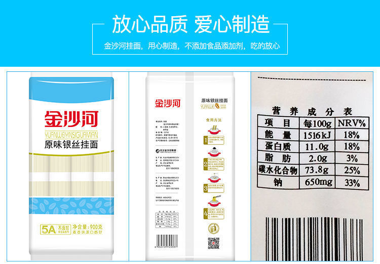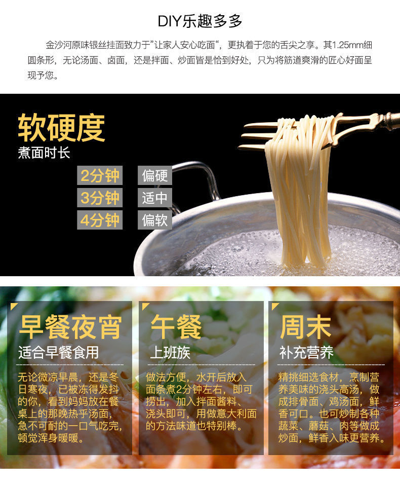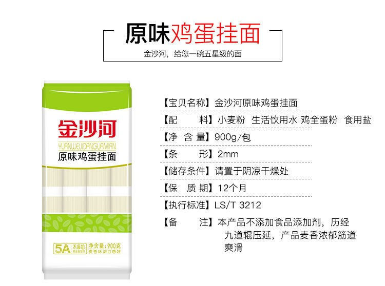 金沙河面条 原味银丝+原味鸡蛋挂面 900g*2包 蓝色