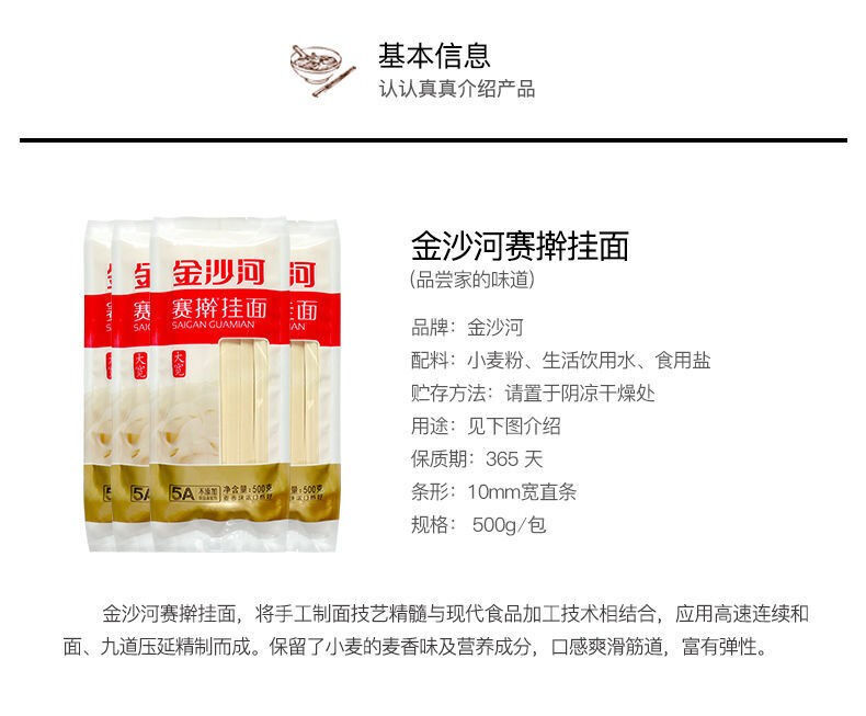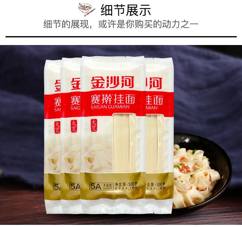 金沙河面条 大宽赛擀挂面 500g*5包/5斤 10mm大宽刀削面 宽面条(单位:组) 红色