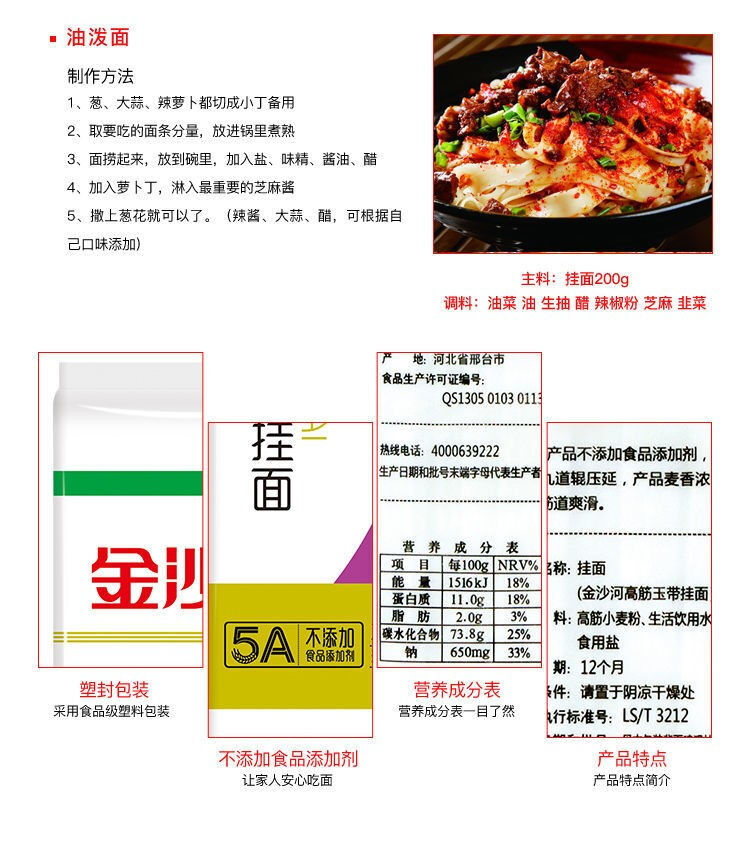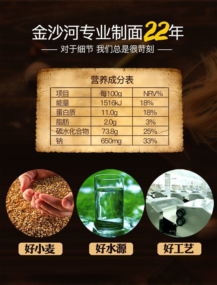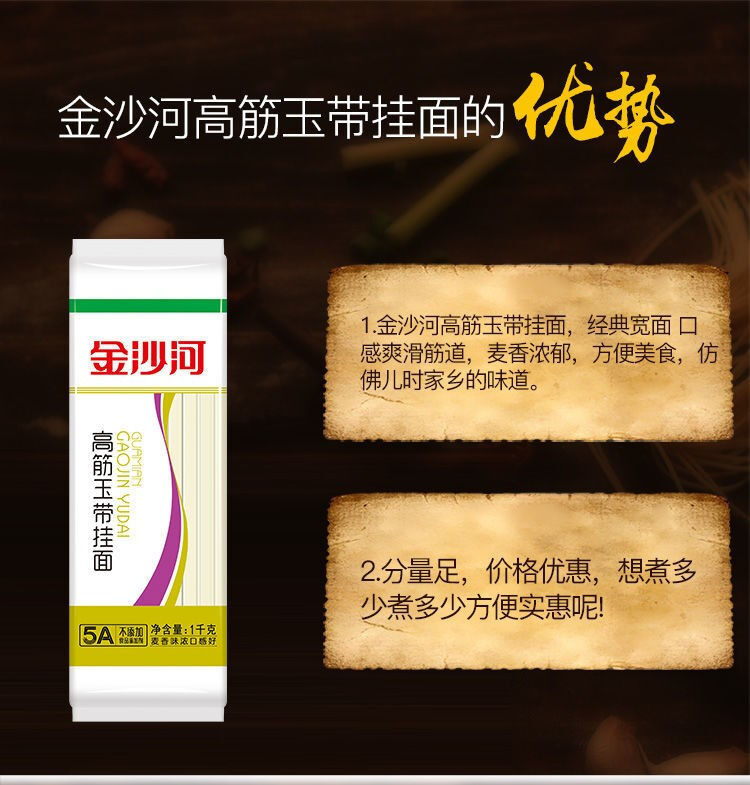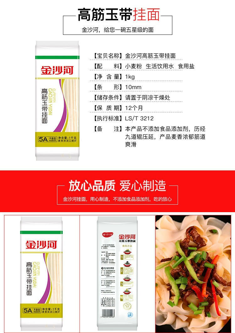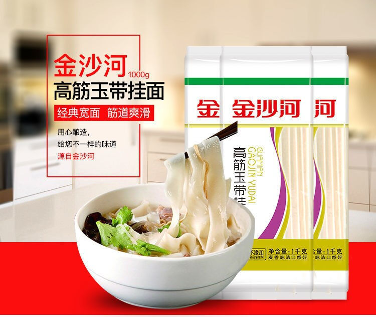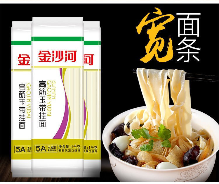 金沙河面条 高筋玉带挂面 1kg*2包/4斤 10mm宽面条 白色