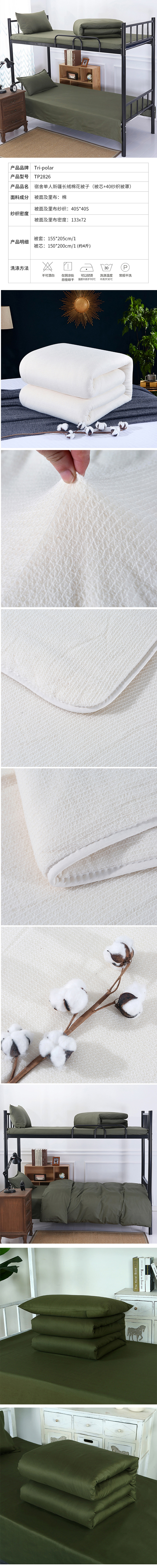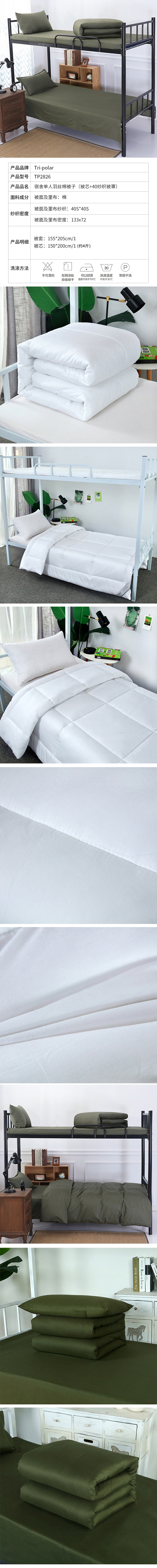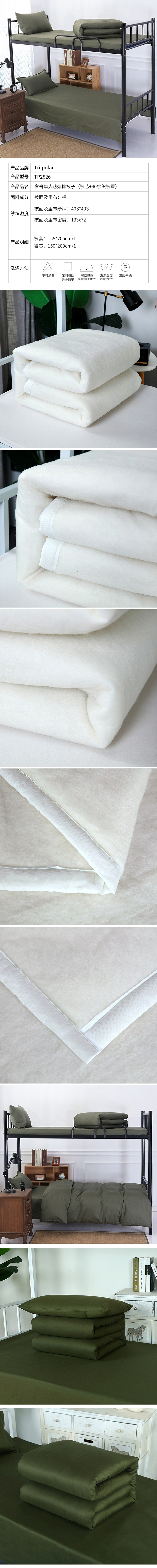 三极 TP2826 棉被芯+ 被罩 150*205cm 军绿色 棉花被芯+40纱支被罩