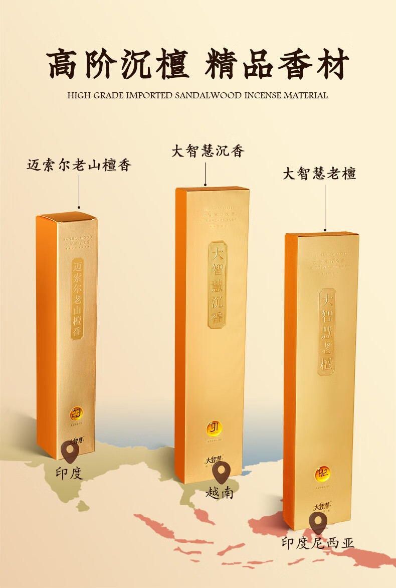 大智慧 供佛香竹签香 家用室内财神招财 印度老山檀32.5cm/600支/染香脚 1盒