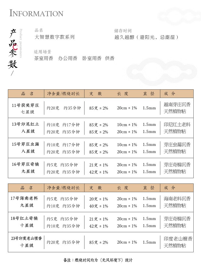 大智慧 高阶沉香线香 室内茶室卧室安神香熏 11号芽庄沉香【20g/20cm】 1盒