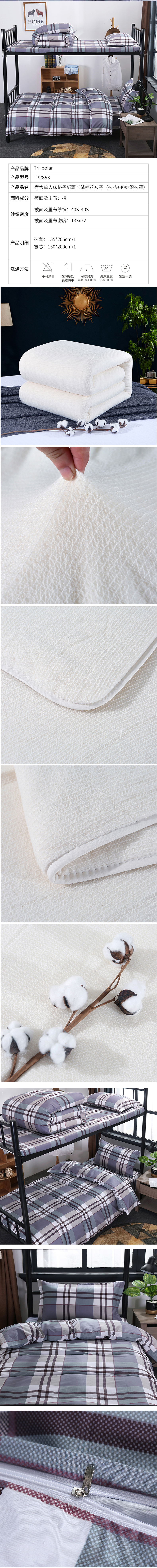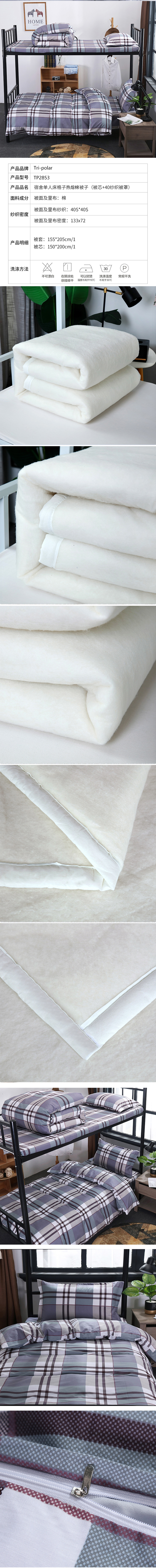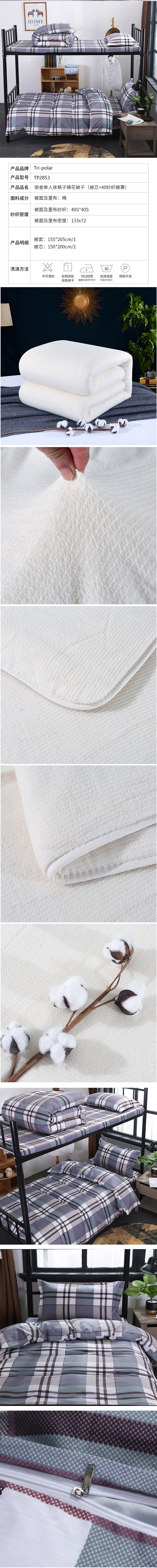 三极 TP2853 棉被芯+40纱支被罩 155*205cm 蓝白格 棉花被芯