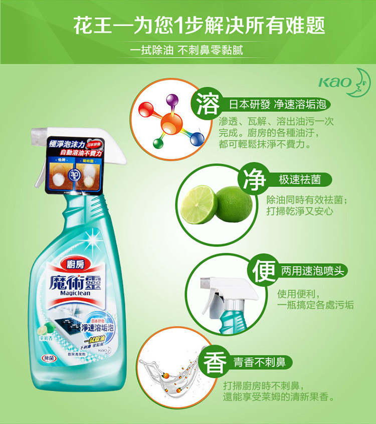 花王(KAO) 清洁剂 莱姆清新除油 500ml 极光色(单位:瓶)